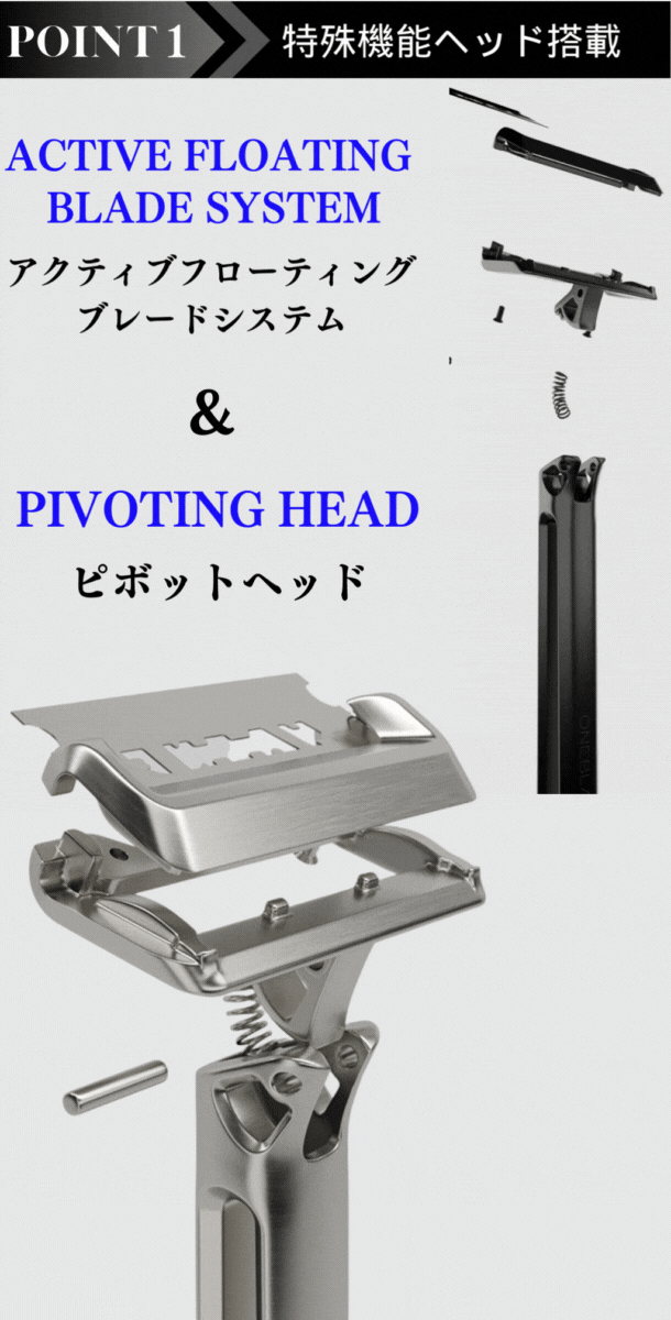 日米特許取得機能のヘッドを搭載したシェービング革命を起こす製品です。