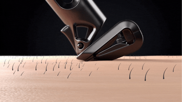 OneBladeのカミソリの刃は“極微量”な3次元的「ゆとり」が設定され、ブレードの角度・露出・ギャップといった重要な基準を一貫して維持しながら、肌の曲面に沿って動くように設計され制御します。