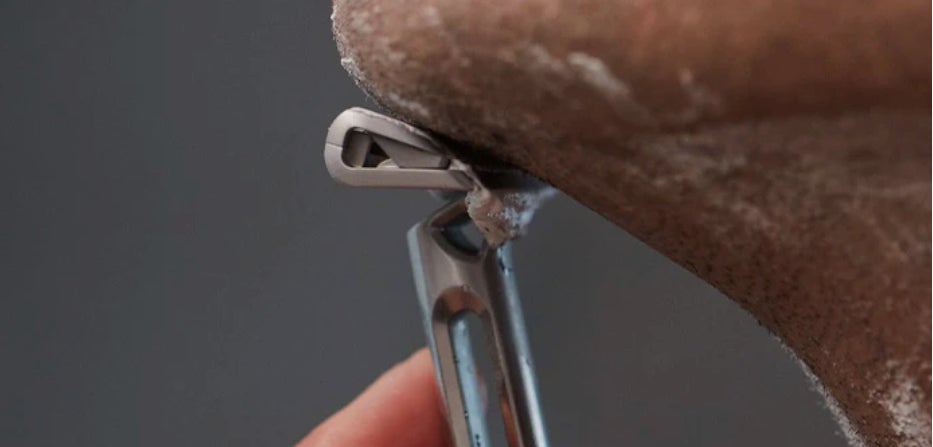 1.処理をする箇所を予め水で濡らし、シェービングフォームを付ける