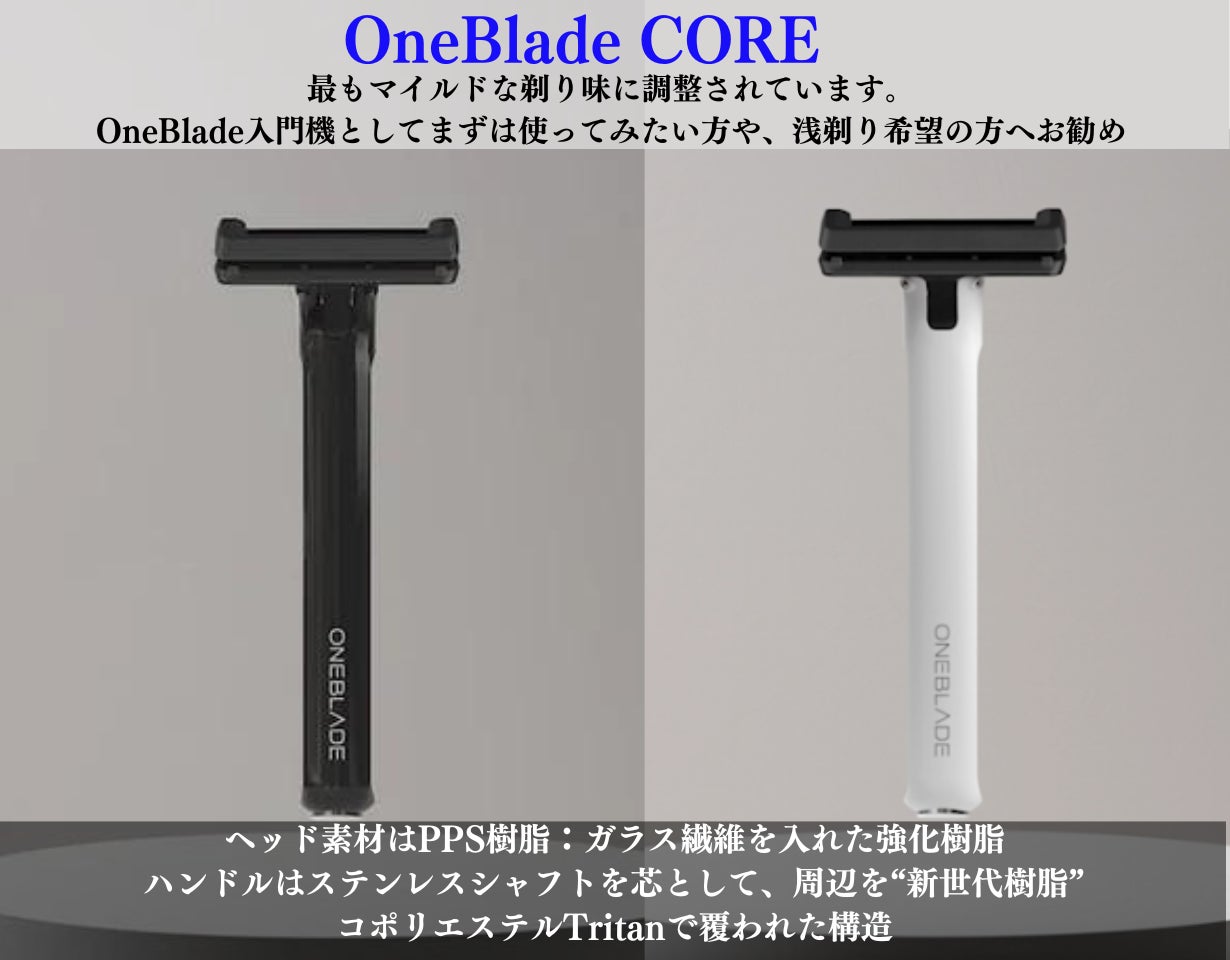 Core: マイルドな刃の設定のエントリーモデルで、クローズドコムに該当します。「特許機能をまずは試したい」という方へお勧めのモデルです。