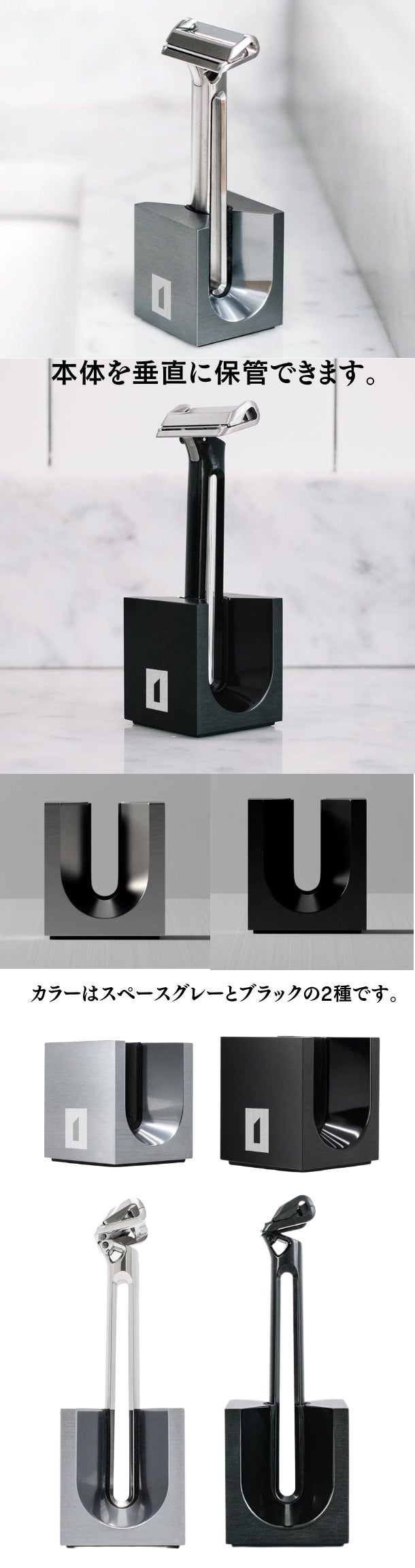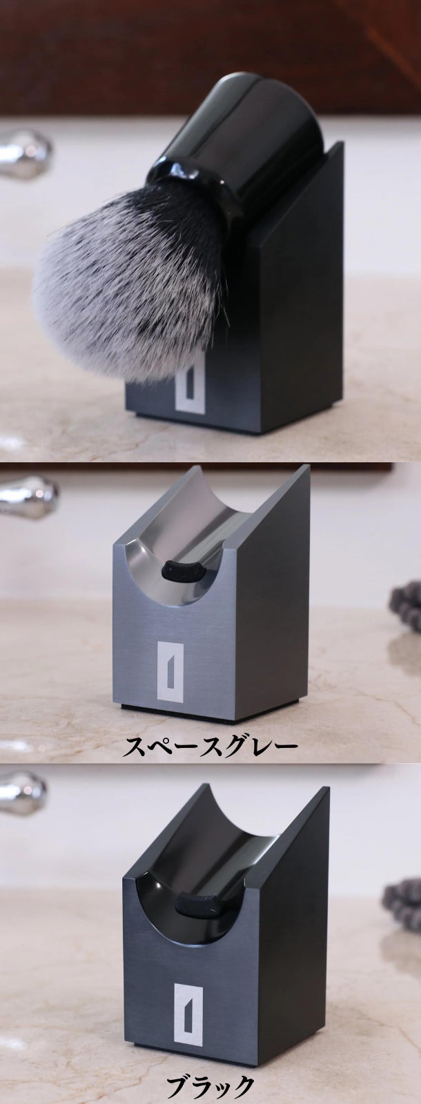 “迅速な乾燥を促進し清潔に保ち、ブラシを長持ちさせます。OneBladeシェービングブラシとの相性も抜群です”
