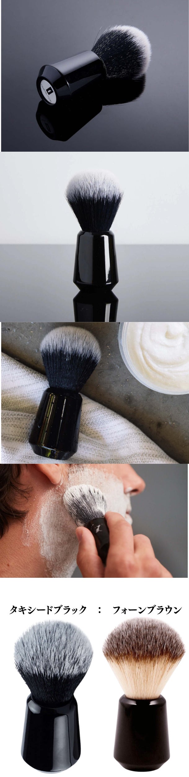 合成毛は、より衛生的で乾燥が早く清掃も容易です。非常に柔らかく、泡立ちも優れた毛をたっぷりと使用し仕立てられたブラシに、人間工学に基づき計算・設計されたハンドルを組み合わせて、操作性も抜群な製品として完成しました。