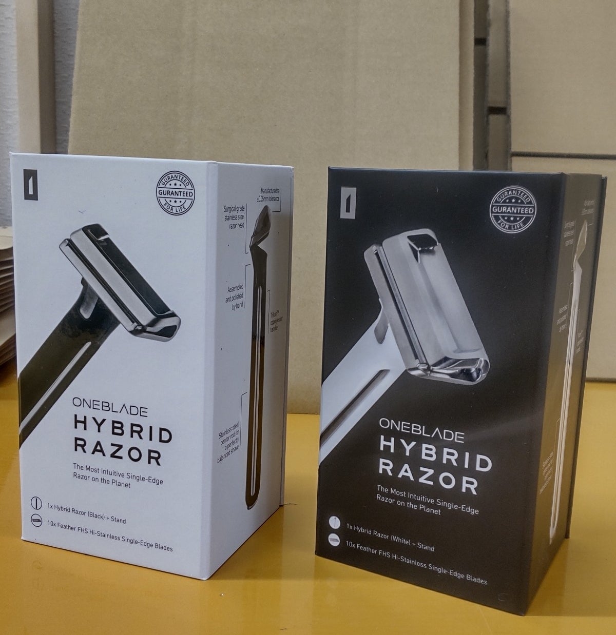 表面に商品画像が印刷され、背景色もブラックとホワイトで変えるなど、OneBladeのパッケージ品質の強いこだわりと高いデザイン性が反映されています。