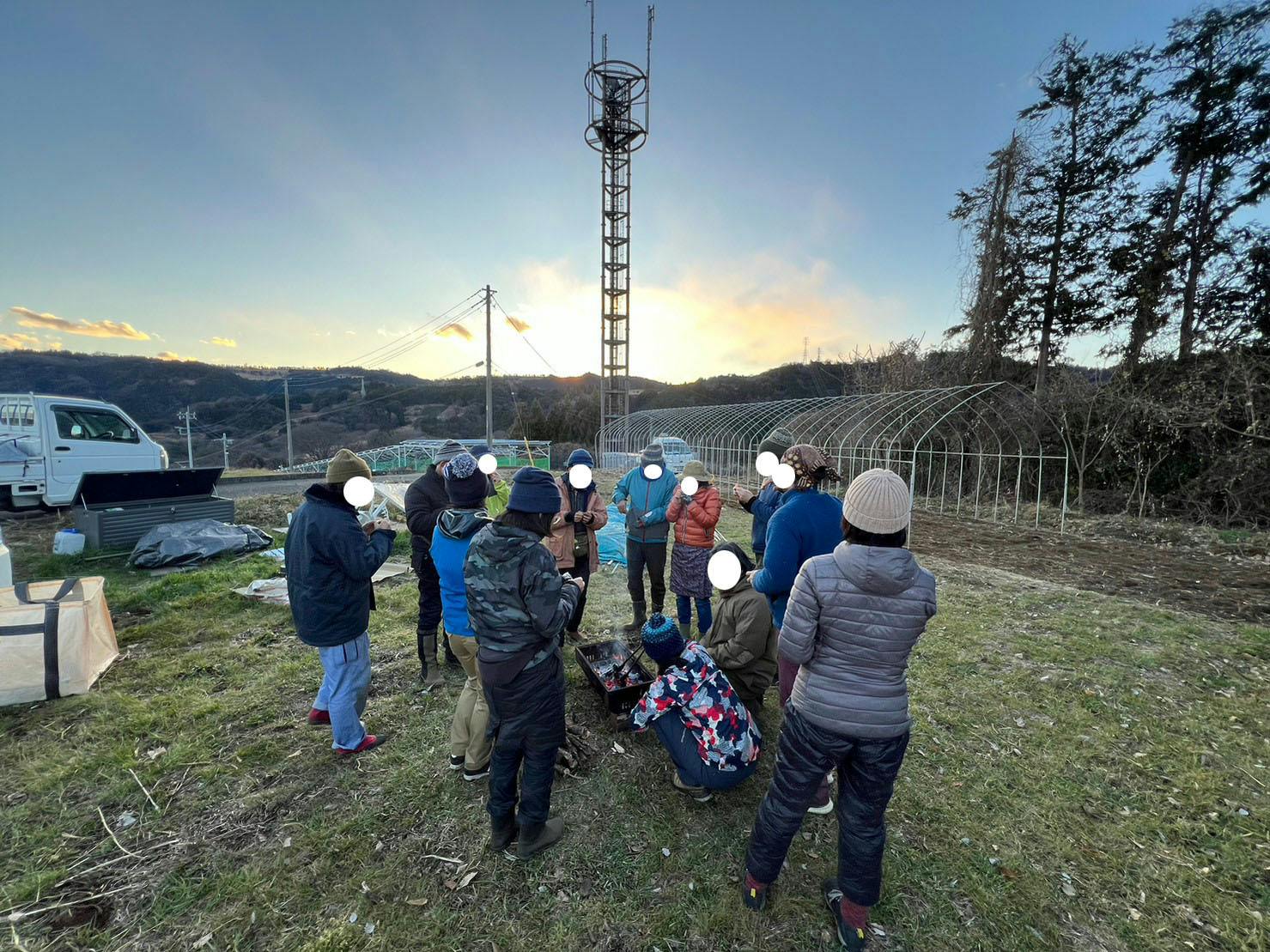 そのように、畝間に並んで単純な作業を他の人とする事で、世間話をしたり、あえて会話をしない時間があったりする事で、ゆるやかな交流が生まれ、親しみを感じたり共感し合える環境が生まれます。