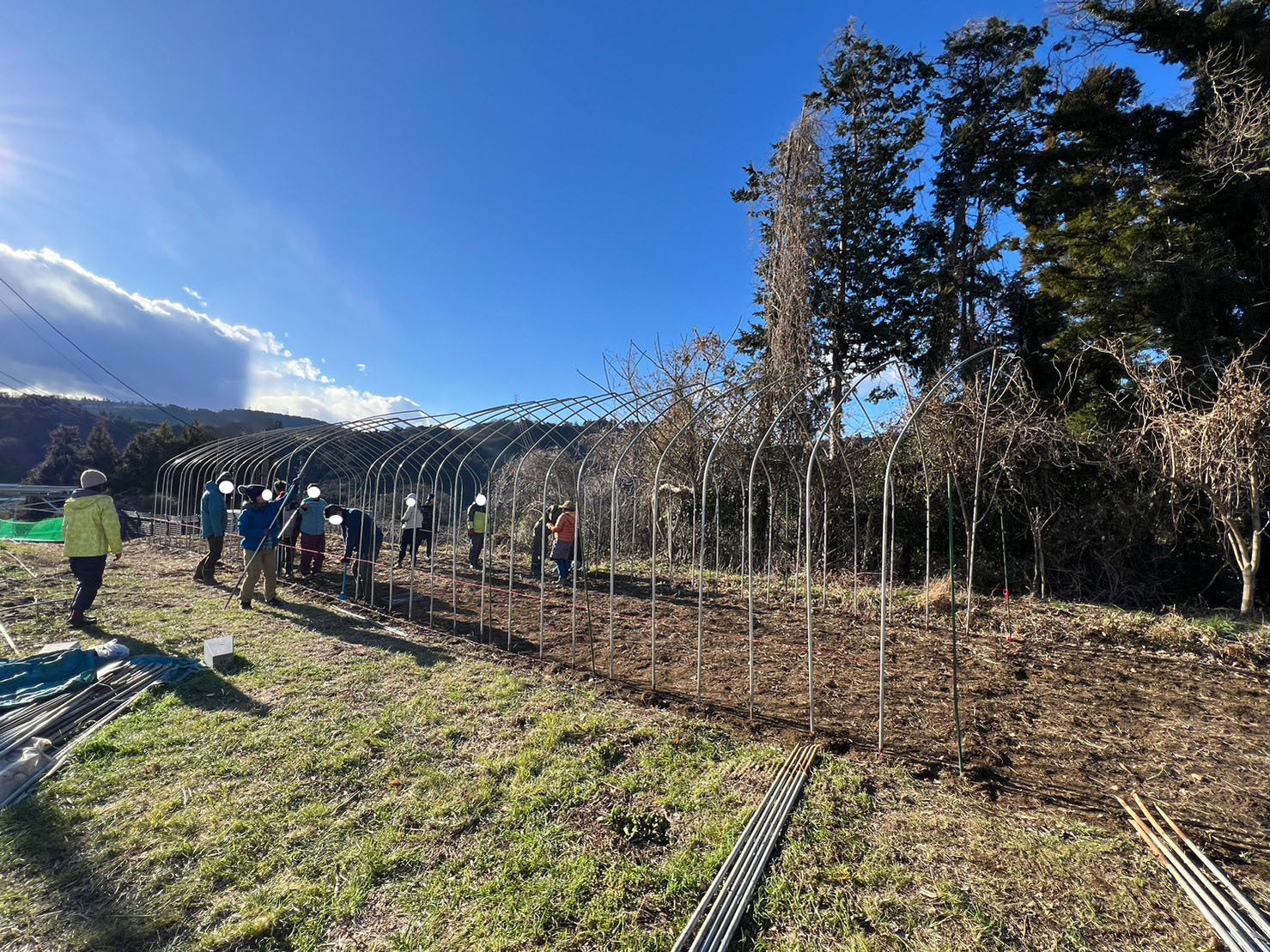 先輩農家から譲り受けたビニールハウスを、栽培用途で使うだけではなく、一部を障害のある利用者が横になって休憩や団らんのできるスペース、楽器の練習場所、アトリエなど、多様な用途として使用できる場所とするため、不足のものを購入する。