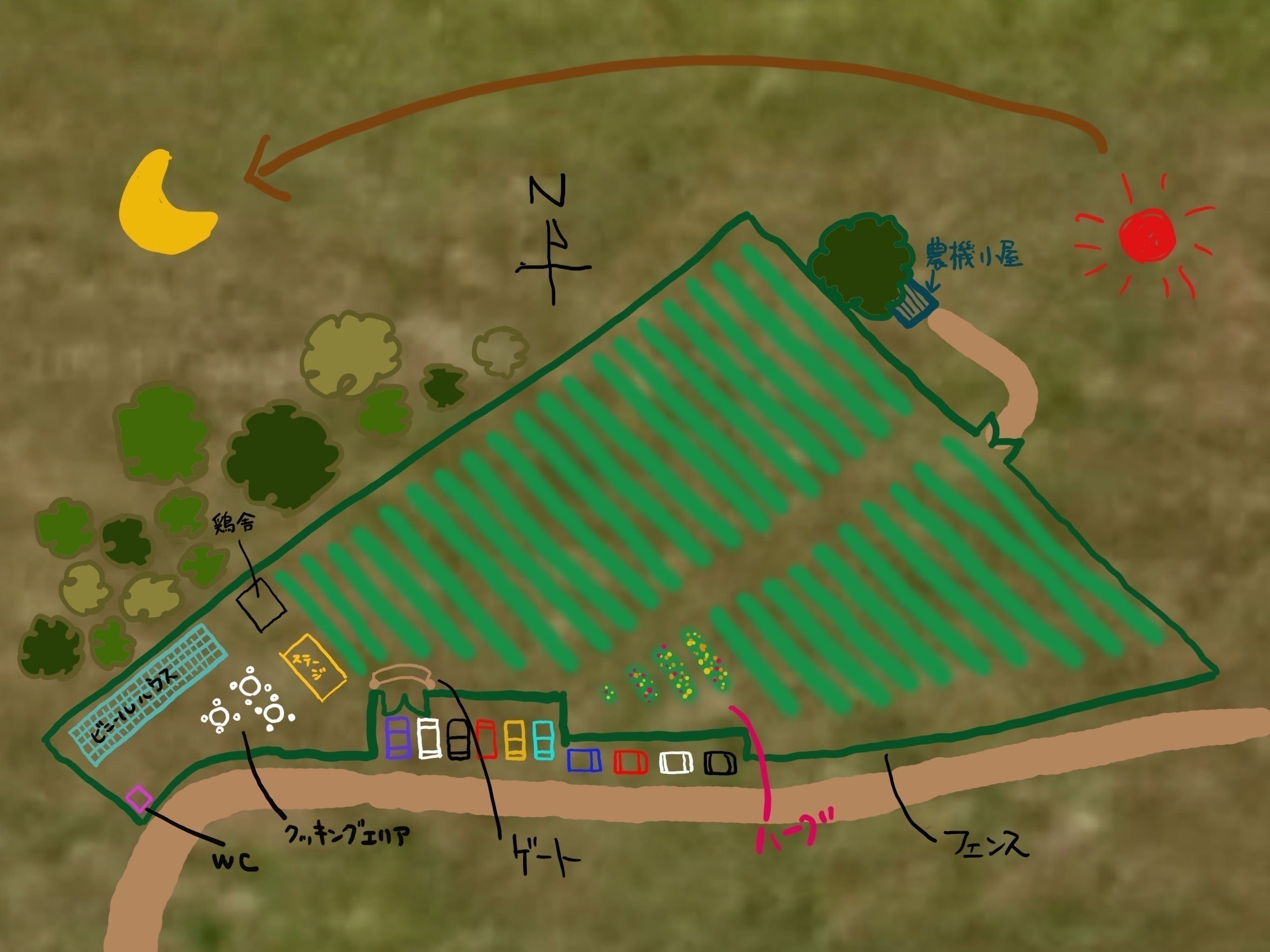 長時間畑で過ごすうえで欠かせないもの。近隣に多目的トイレを併設した公民館もありますが、車での移動か必要な距離にあります。