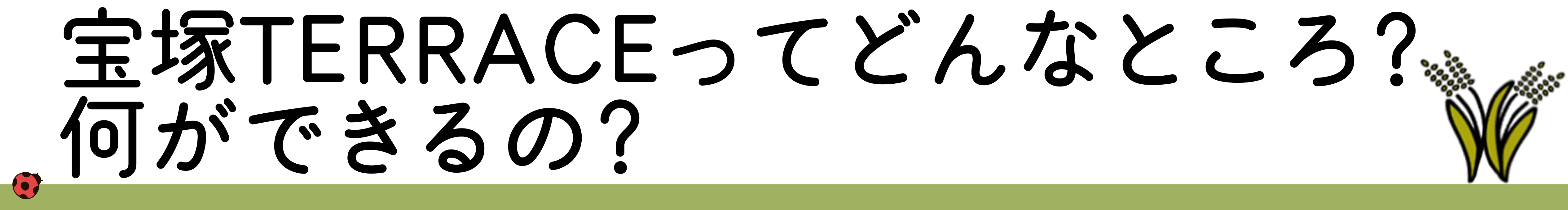宝塚TERRACEではお米と野菜の栽培を中心とした農業を持続可能な方法で行います。ご来場いただく皆様には先ず食べてその美味しさを知ってもらいたい!次に農業体験でその美味しい作物の作り方を知ってもらいたい!
