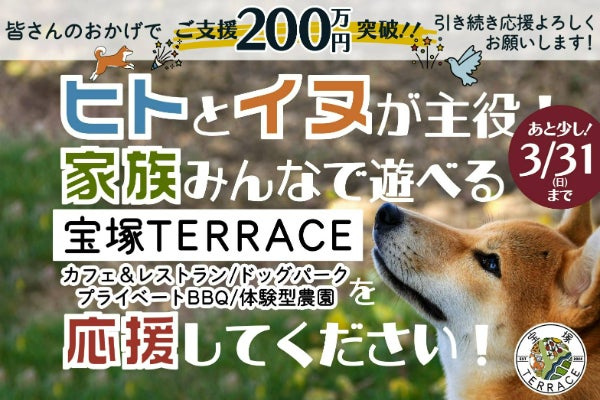 2024/03/23 22:01第2目標!200万円突破!おかげさまで、200万円を上回るご支援をいただいております。150名を超える沢山の支援者様からの温かいエールに感激しております。応援コメントも一つずつ拝読させていただいております。引き続き、皆さまに愛される施設つくりを目指して、社員一同、全力で取り組んでまいります。さて、クラウドファンディングは残り1週間となります!宝塚TERRACE史上最大級にお得な限定プランをお見逃しないよう、是非、お買い求めください!駆け込み追加購入も大歓迎です!!また、このクラウドファンディングを!宝塚TERRACEを!たくさんシェアしていただけると嬉しいです!皆さまの応援が何より励みになります!引き続きよろしくお願いいたします。宝塚TERRACE もっと見る