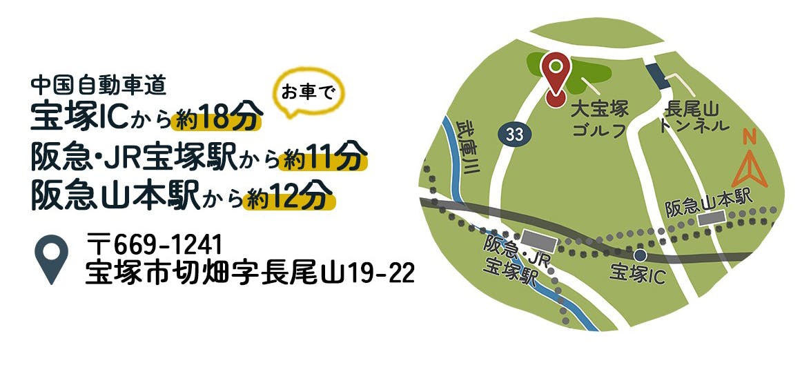また、新名神高速道路宝塚北SAスマートICより12分。中国自動車道宝塚ICより18分と各高速道路ICからも好アクセスです。
