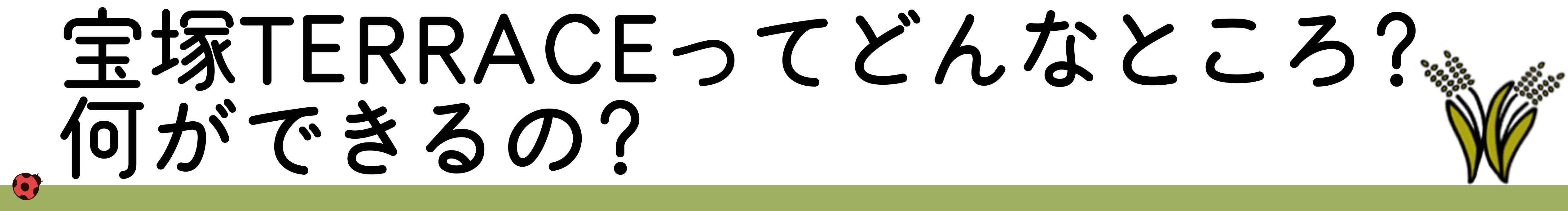 宝塚TERRACEではお米と野菜の栽培を中心とした農業を持続可能な方法で行います。ご来場いただく皆様には先ず食べてその美味しさを知ってもらいたい!次に農業体験でその美味しい作物の作り方を知ってもらいたい!