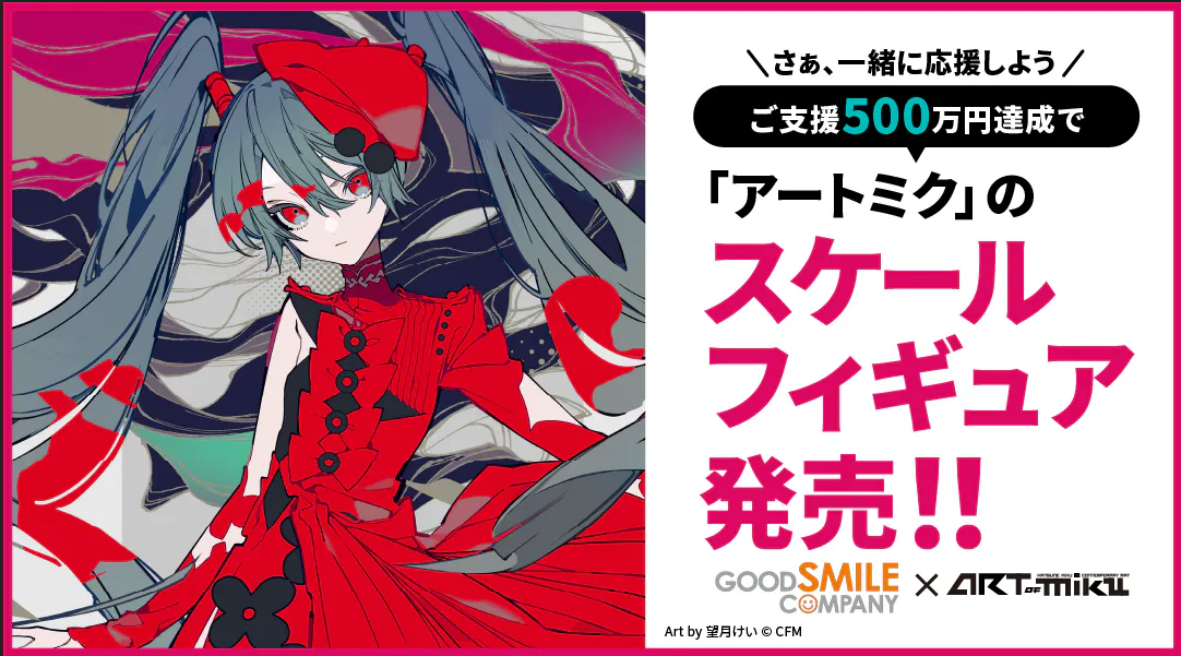 目標としている500万円を達成した場合、イラストレーター望月けいさんが描きおろしたオリジナルデザインの初音ミク「アートミク」のスケールフィギュアを企画し、後日販売します。