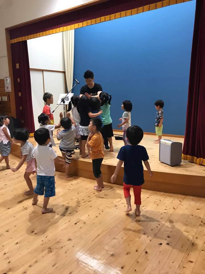 (長崎式見保育園公演より。終演後のお昼寝前にハイタッチ(2017年8月24日))