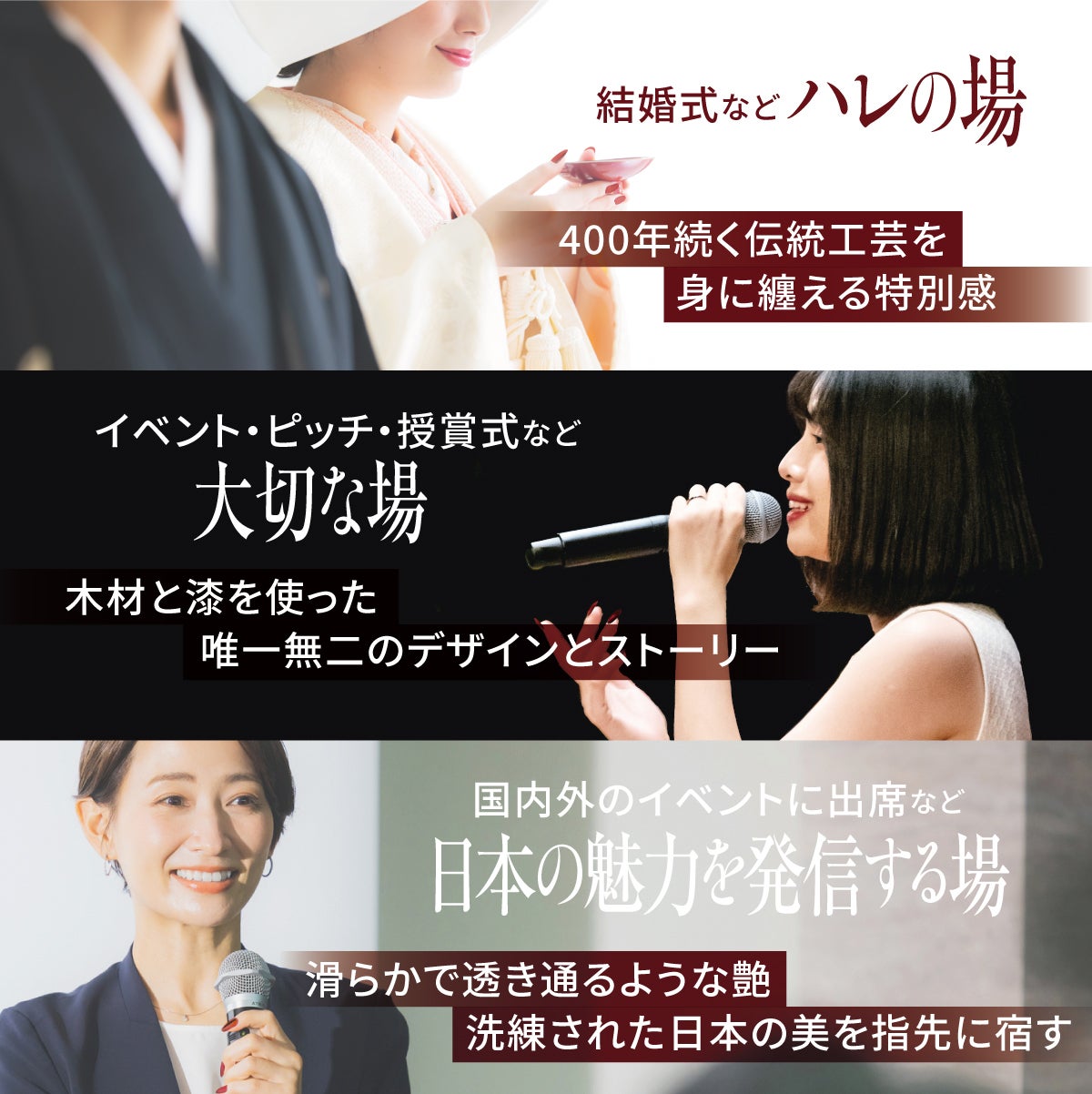 ▼飛騨春慶ネイルを使ってほしいシーンと飛騨春慶ネイルがハレの場にふさわしい理由