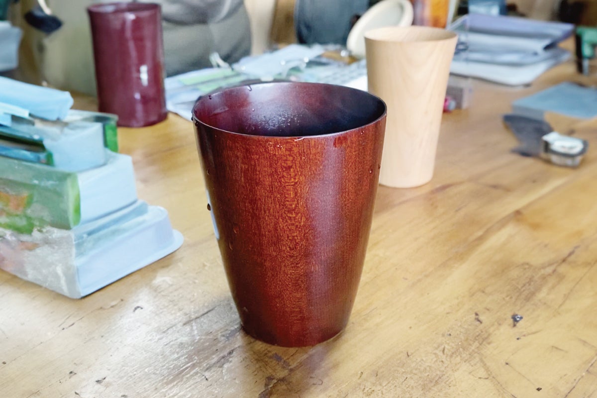 木地の職人さんのところで飛騨春慶のコップにコーヒーを淹れていただいたもの