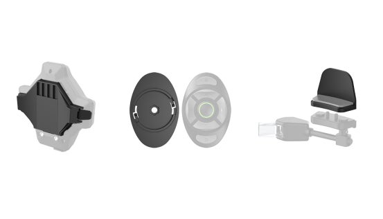 2つのヘルメットで本製品を交互に使用したい場合は、【交換用ヘルメット取付マウント】をご購入いただき、別のヘルメットに装着することで、本体を取り外して別のヘルメットに付け替えることができます。