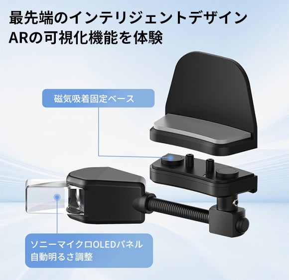 ディスプレイ部分は走行支援情報を閲覧するためのものであり、目線の正面ではなく、やや上部に設置する必要があります。走行時に前方視界や側面視界を妨げないようにご注意ください。