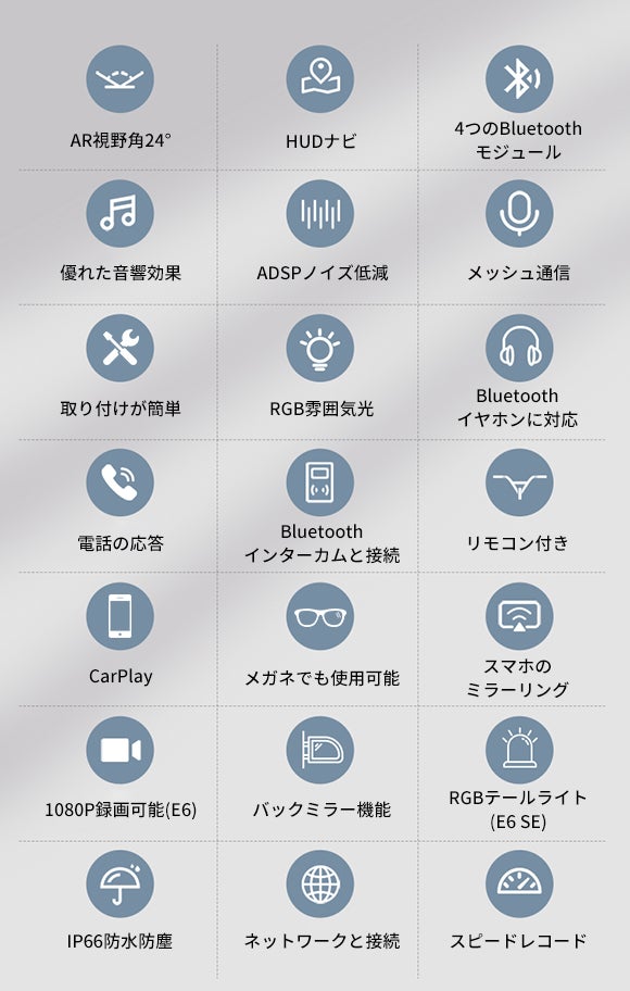 この製品は、ヘッドアップディスプレイ、GPS、ハンズフリーキット、および音声コマンドを組み合わせたオールインワンのデバイスであり、装着したままでも常に道路状況に注意を払うことができます。 スマホまたはインターネットに接続すれば、GPSシステムは正確な方向を示すため運転中に道に迷うこともありません。音声制御機能により、ハンドルを離したり視線を道路から外したりせずに、気軽に通話をすることも可能です。