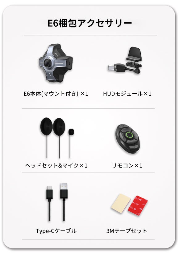 「MOTOEYE E6&E6 SE」はバイク用ヘルメットに取り付けられるHUD(ヘッドアップディスプレイ)です。GPSやBluetooth機能も組み込まれており、スマホとの連携も可能です。視線を前方に向けたまま、地図や通話、音楽、速度などの情報表示することが可能です。