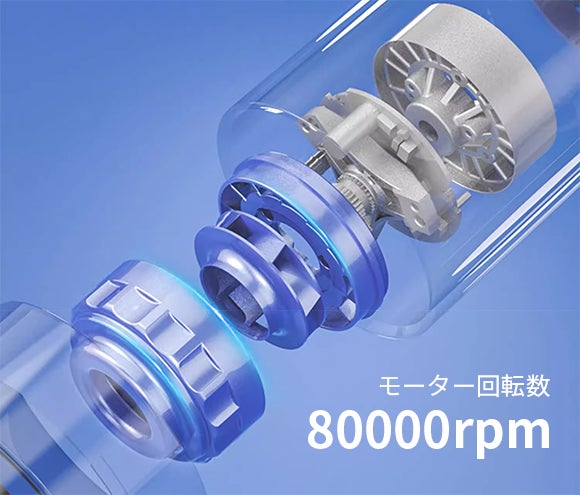 「AutoBot VM」は、1分間に80,000回転の高性能ブラシレスモーターを採用することで、12,000Paの強力吸引と噴射を実現しました。目に見えない小さな汚れまでしっかり吸引できます。