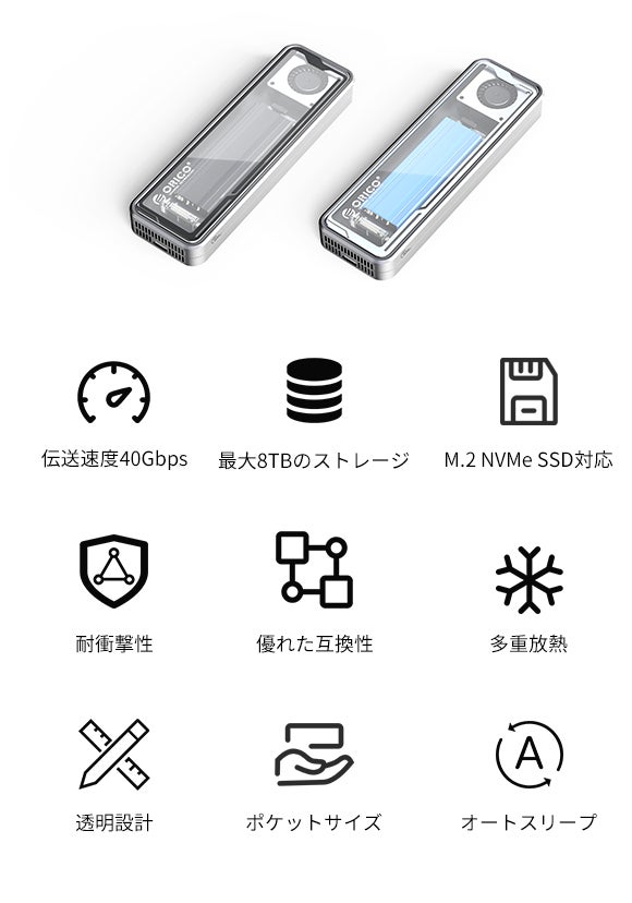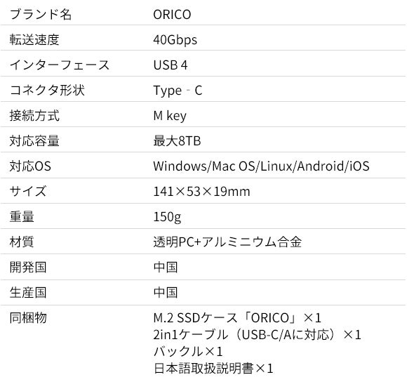 「ORICO」はUSB 4インターフェースを採用し、理論上の伝送速度は最大40Gbps。