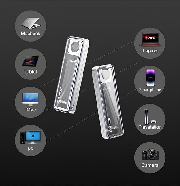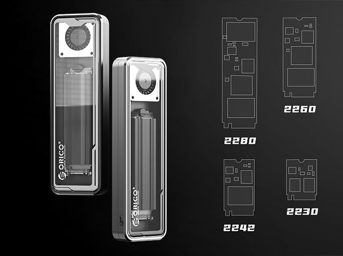 「ORICO」は2230・2242・2260・2280の4種類のM.2 NVMe SSDを使用できます。最大8TBの大容量SSDまでサポートし、工具を使わず簡単に設置できます。