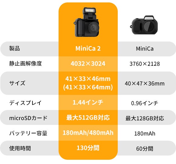 「MiniCa 2」(ミニカ2)主な特徴: