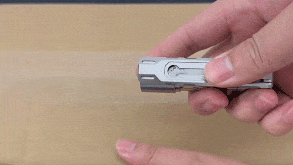 サイドボタンを押すだけで、日常やアウトドアに不可欠なナイフと栓抜きに早変わりします。