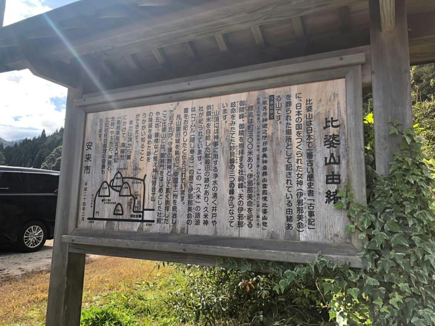 比婆山は、日本最古の歴史書である『古事記』に記載された最初の山であり、国生みの神、イザナミノミコトの御陵(みささぎ)が祀られている由緒ある山です。その比婆山の山頂にあるのが、久米神社です。