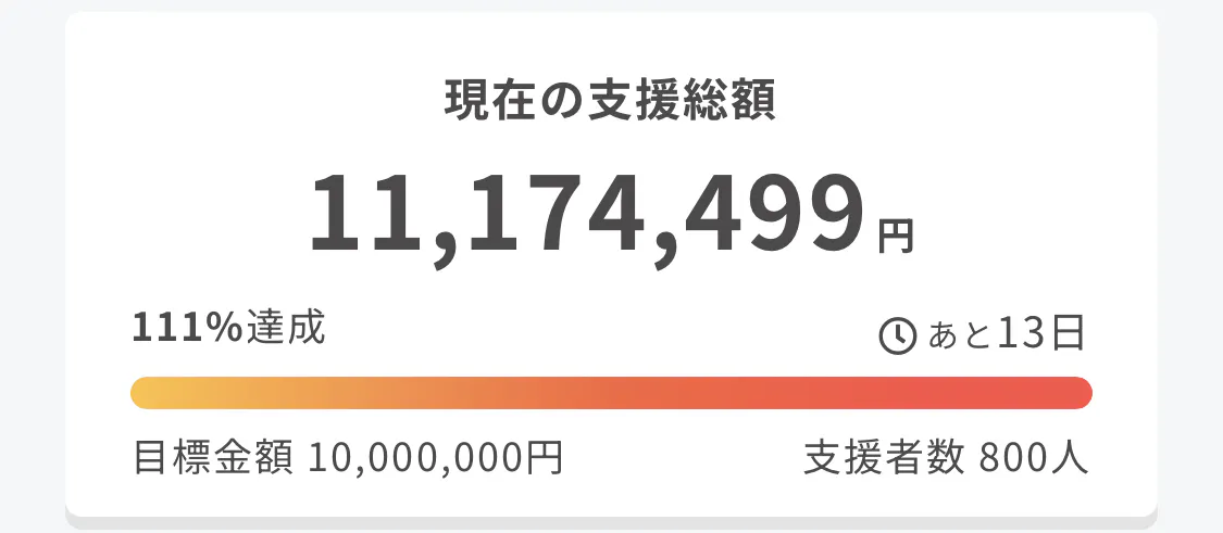 せて、目標1000万円と達成を迎えたばかりですが、