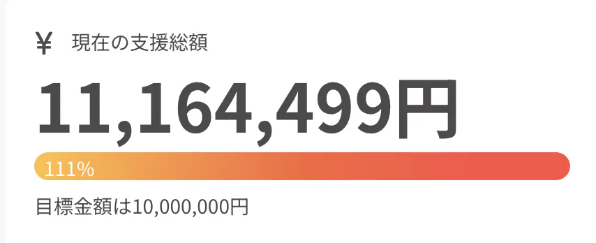 700名以上の方々からの温かいご支援により目標金額の1,000万円を達成いたしました。