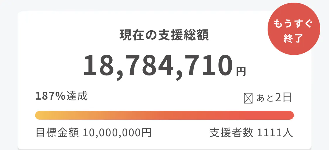 多くの方にご注目・ご支援頂いた当プロジェクトの