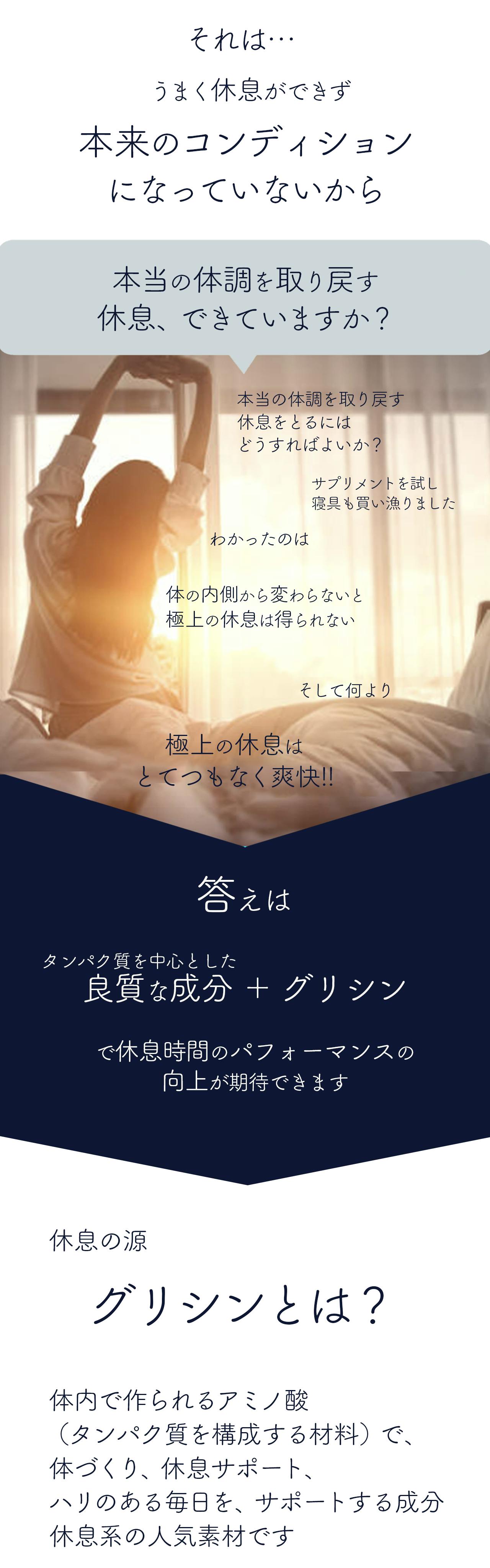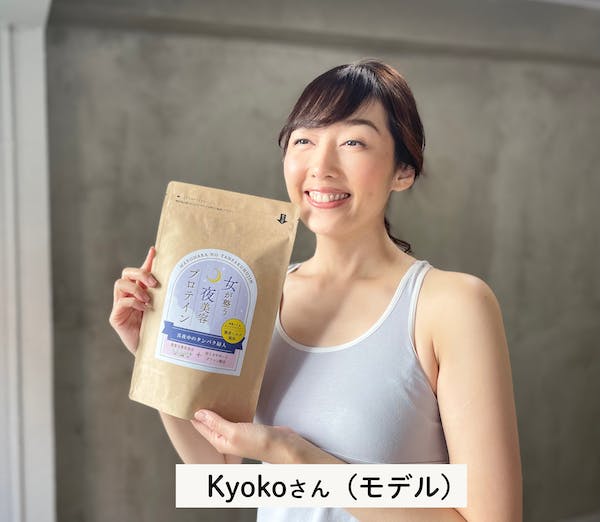 今回商品のモデルを務めさせて頂いたKyokoです。職業柄、太らないよう、肌もすこやかな状態で保つことを心がけています。ただ仕事と家事の両立は年齢を重ねるたびに疲労感が増すようになり、コンディションを保つことが年々難しくなったと感じていました。今回お仕事を通して商品を知り、試してみたところ、以前より精力的に仕事に取り組め、嬉しく思っています。しっかり休むことは大切ですよね。これからもこちらに頼っていこうと思います。