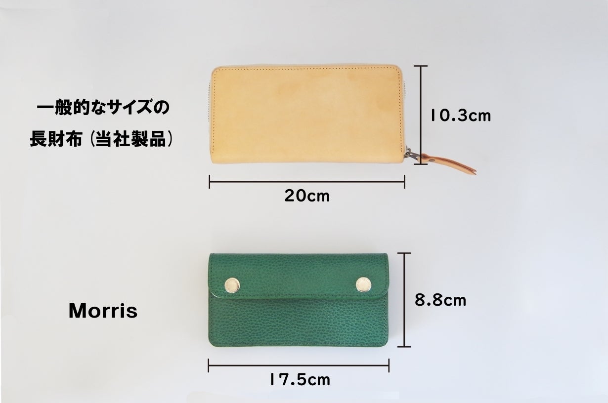 「MORRIS」のサイズはW175㎜×H88㎜とコンパクト長財布のサイズ感を踏襲