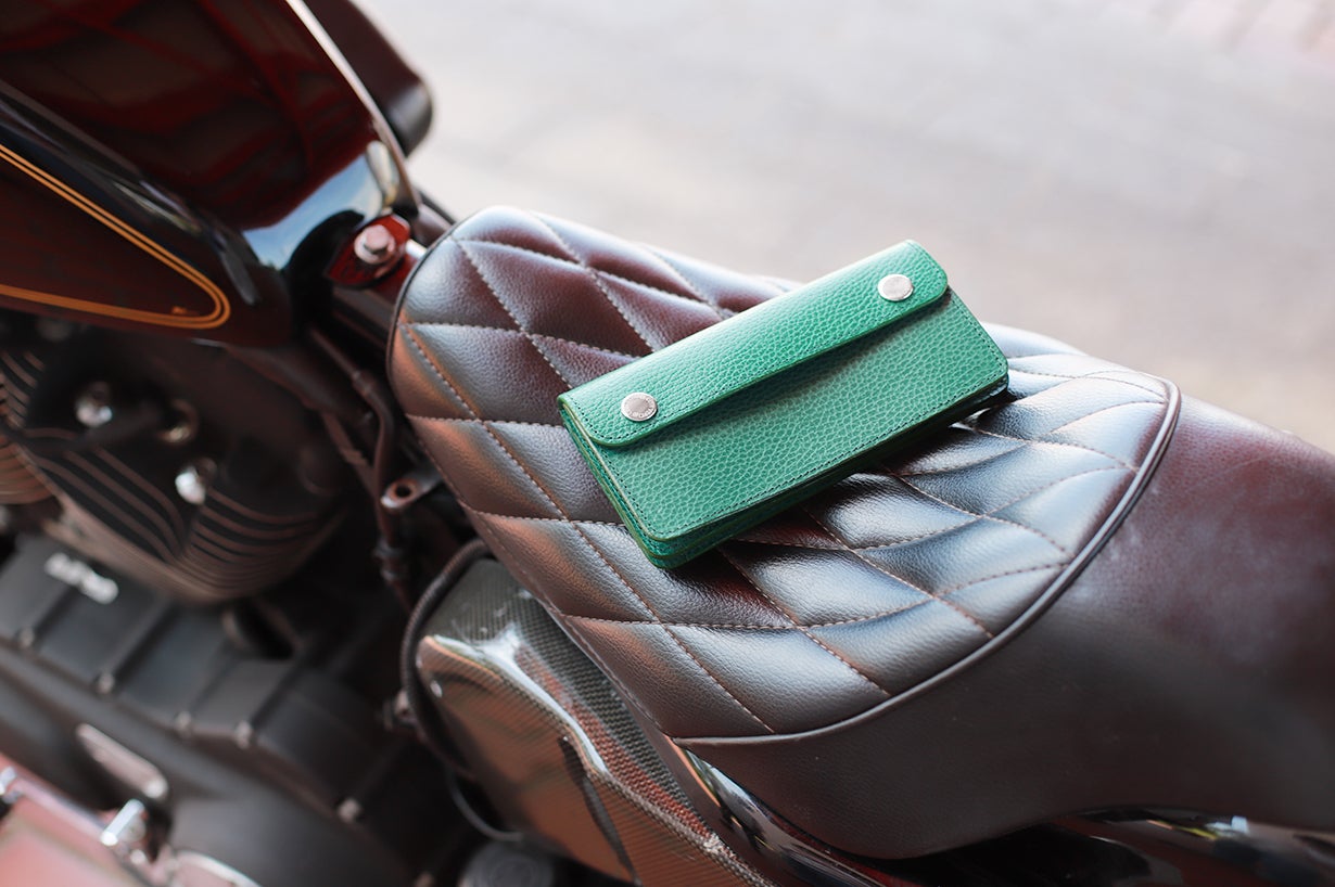 カジュアルライクなパーツ使いと発色の良いイタリアンレザーによりハードなイメージのトラッカーウォレットからどなたでも、どんなシーンでも映える「カワイイ」トラッカーウォレットに仕上がりました。