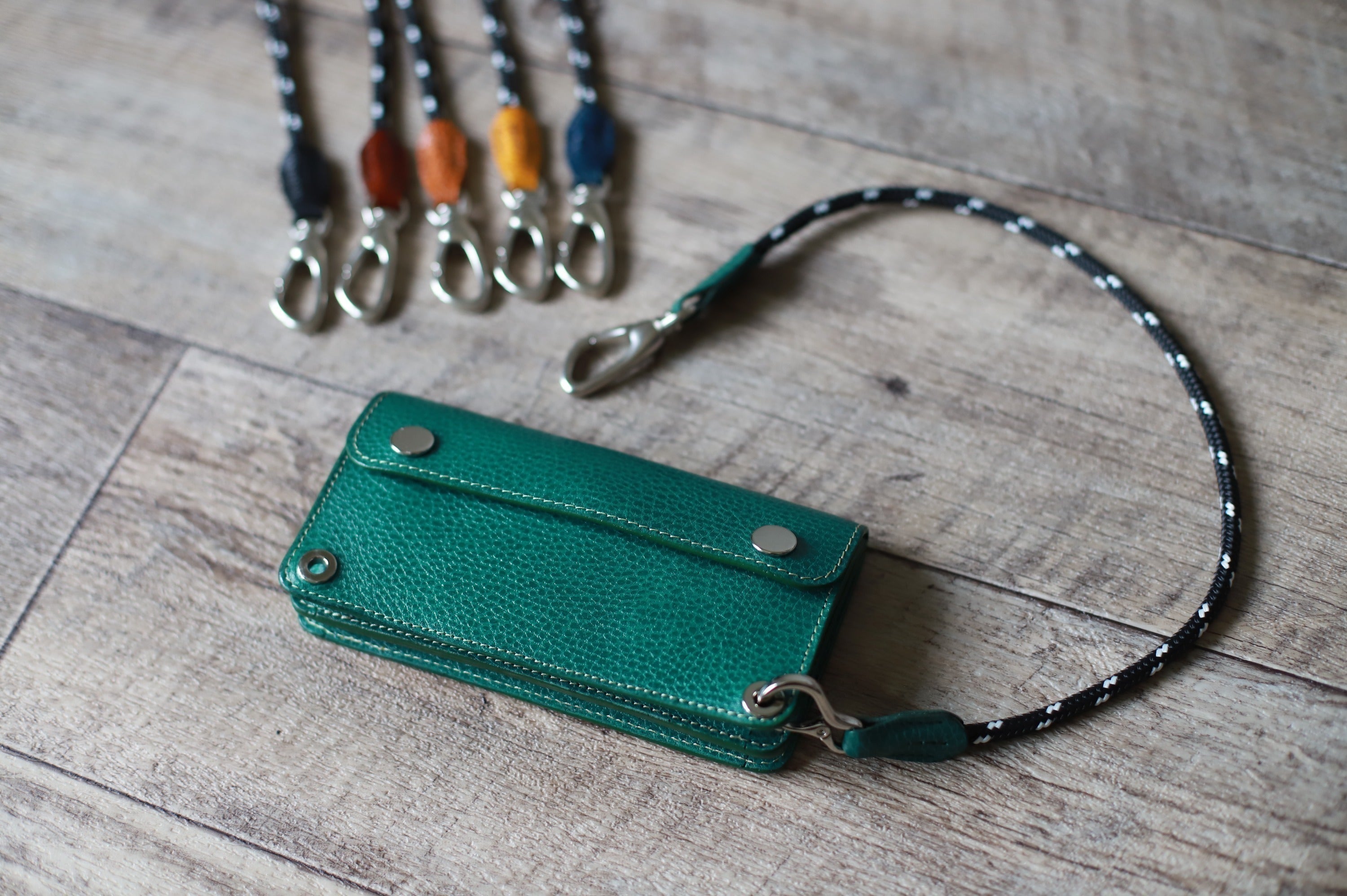 ウォレットコードには、実際のクライミングに使われるザイルロープを使用。金具もすべて国産金具。