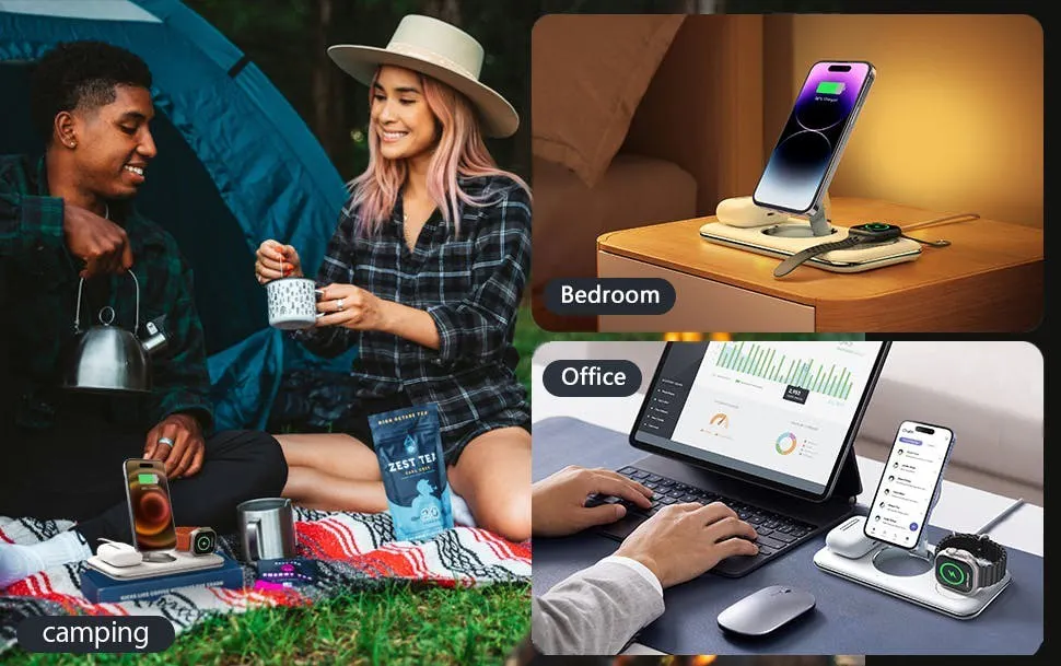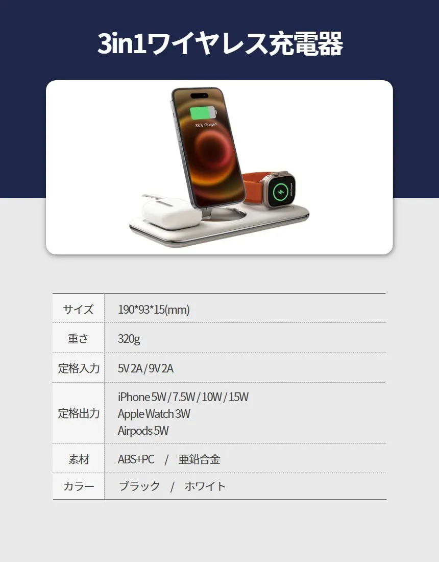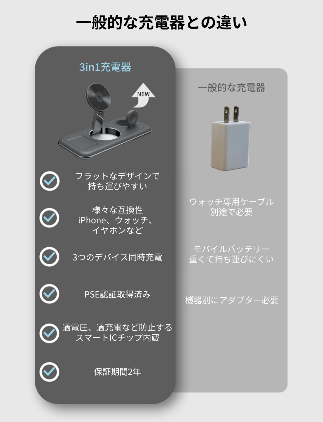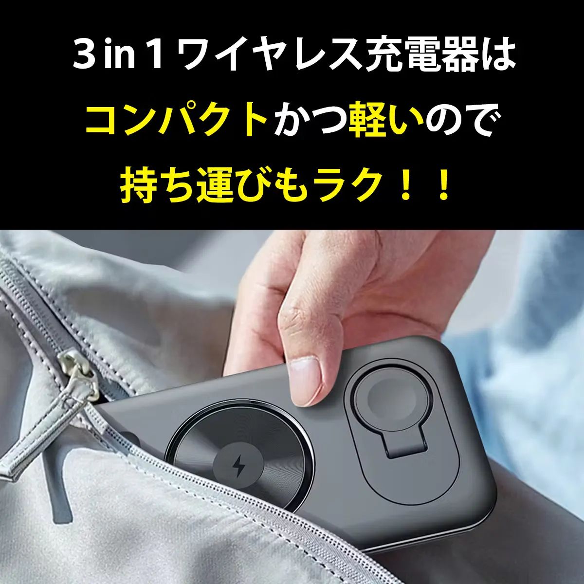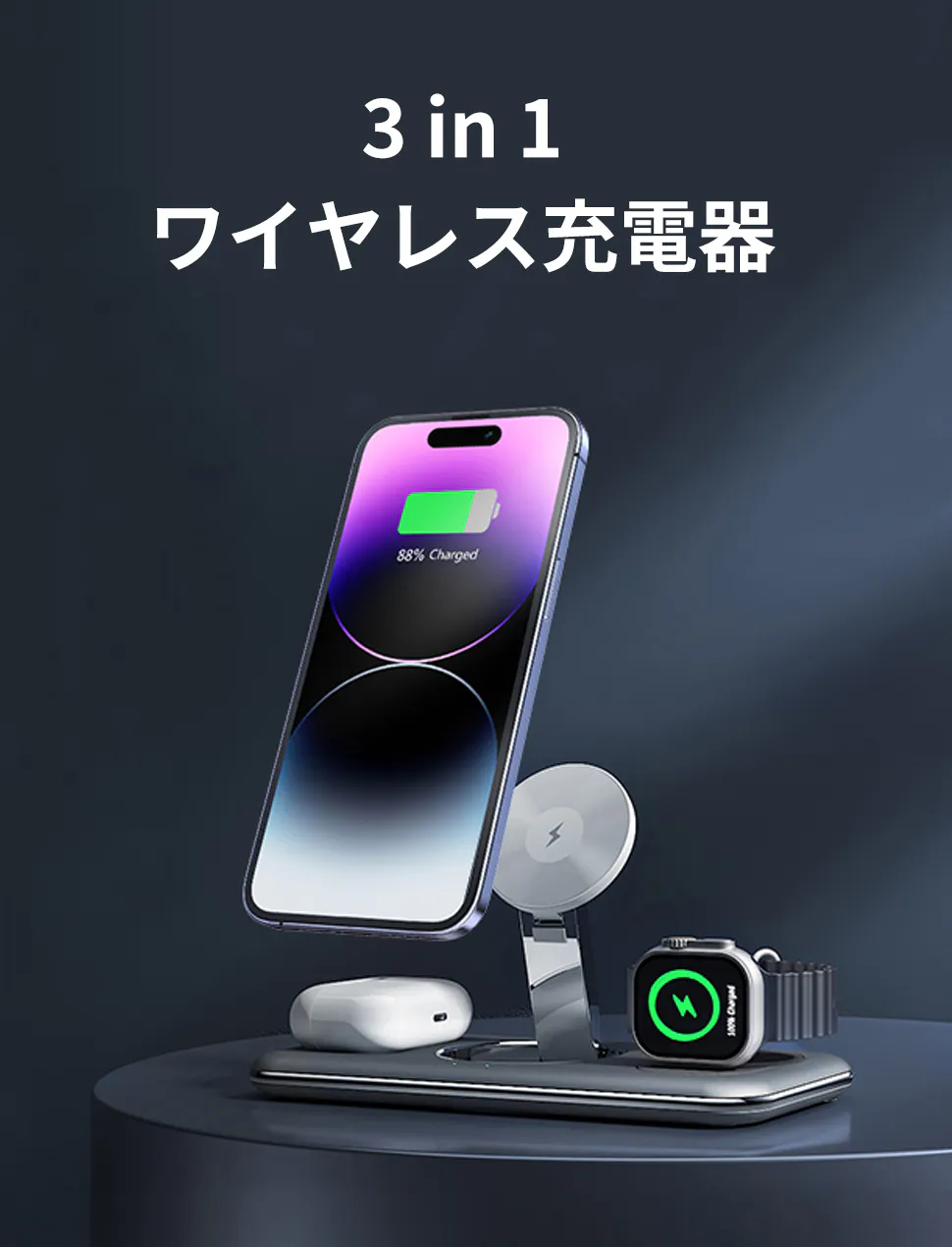 3in1ワイヤレス充電器で、バッテリーを気にせずデジタル機器を思う存分ご使用ください!