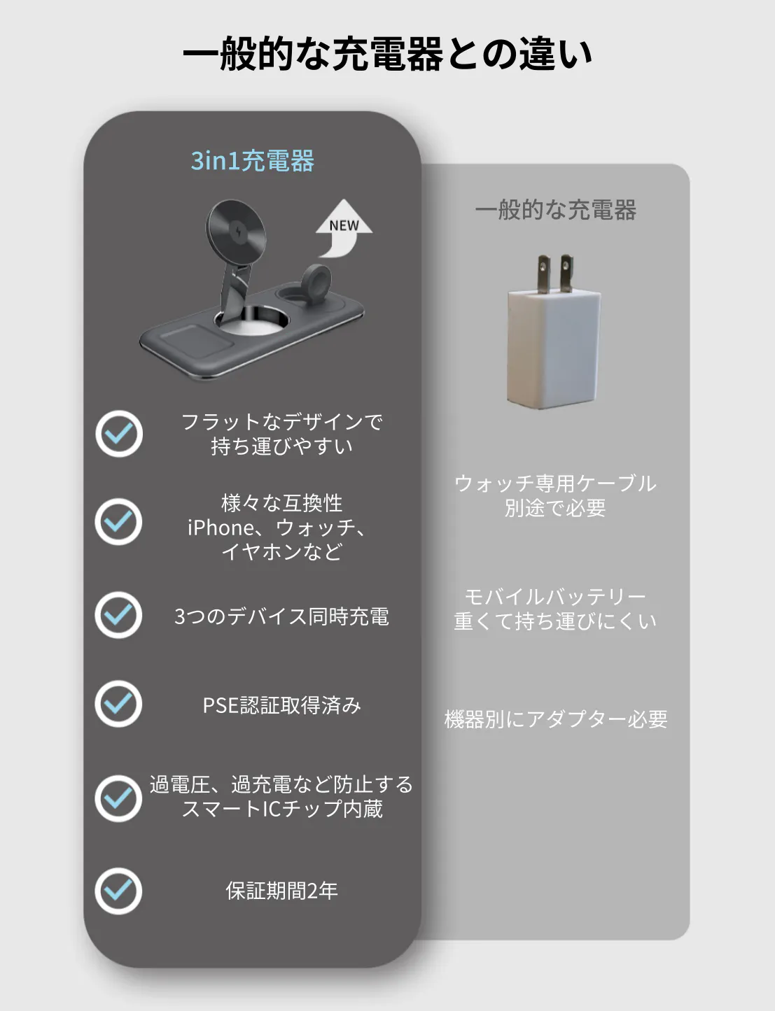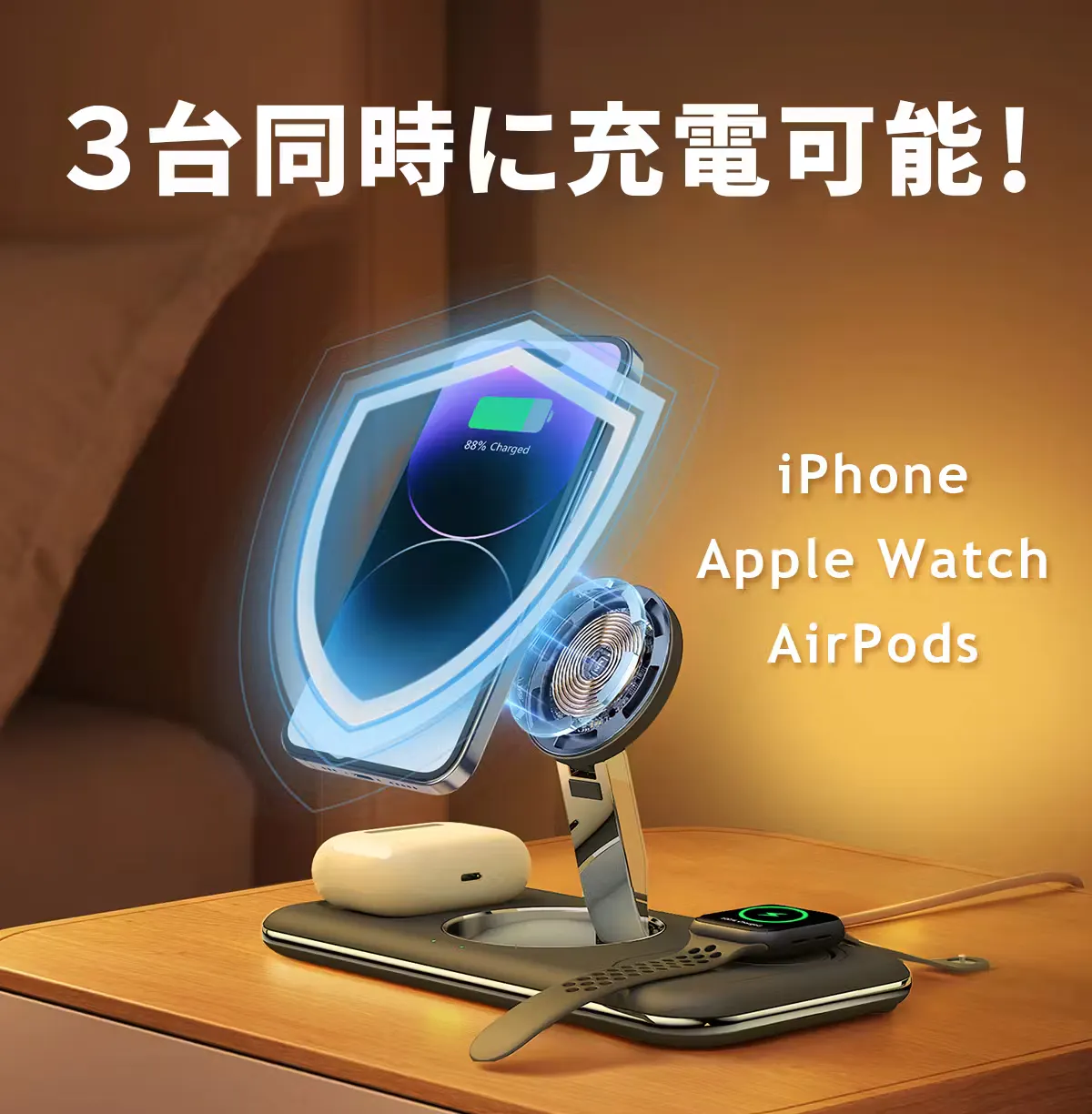 たった一台で、iPhone・Apple Watch・AirPodsの同時充電が可能!!