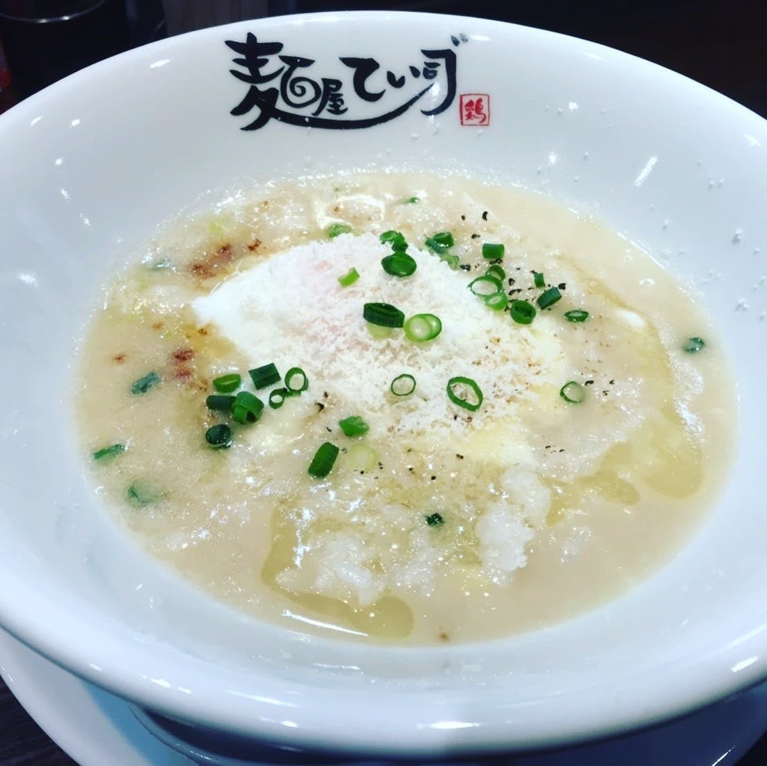 炙ったチーズ、温泉たまご、薬味ネギ、EXバージンオリーブオイル、パルミジャーノ・レッジャーノをたっぷりかけたラーメン屋で食べる最上の1品をご提供します。