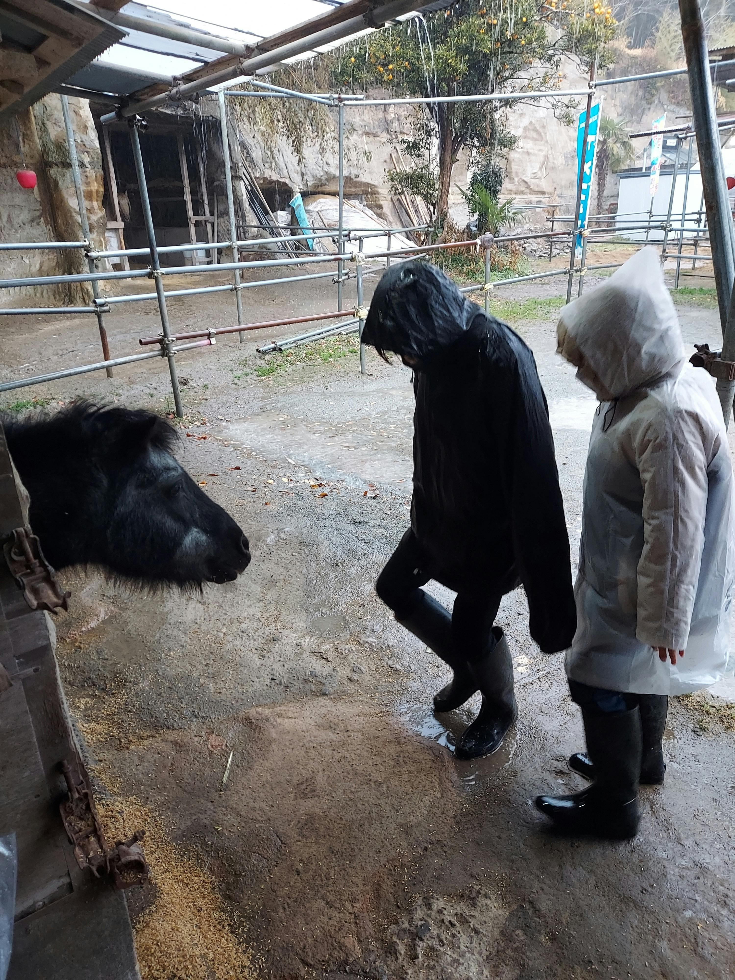 2024/01/21 21:13昨日、お手伝いをしに来た娘が馬のお世話の大変さを感じてくれ、「雨だったら親方(私の父)大変じゃん!今日も行く!」とカッパを着てお手伝いに!!そして、今日は大雨の中観光に来たお客様が来ました。野馬追についての話をする父!資金があればもっと環境を整えて、地域のために活動ができるのですが、、、今回の50万は馬のために使いたいので難しい。目標金額以上ご支援が集まればと願うばかりです!雨と強風の中、馬ににんじんをあげてもらいましたが、写真が取れなかった(。>д<)たくさんの人ににんじんをもらえて喜んでいた馬たちでした(o・ω・o) もっと見る