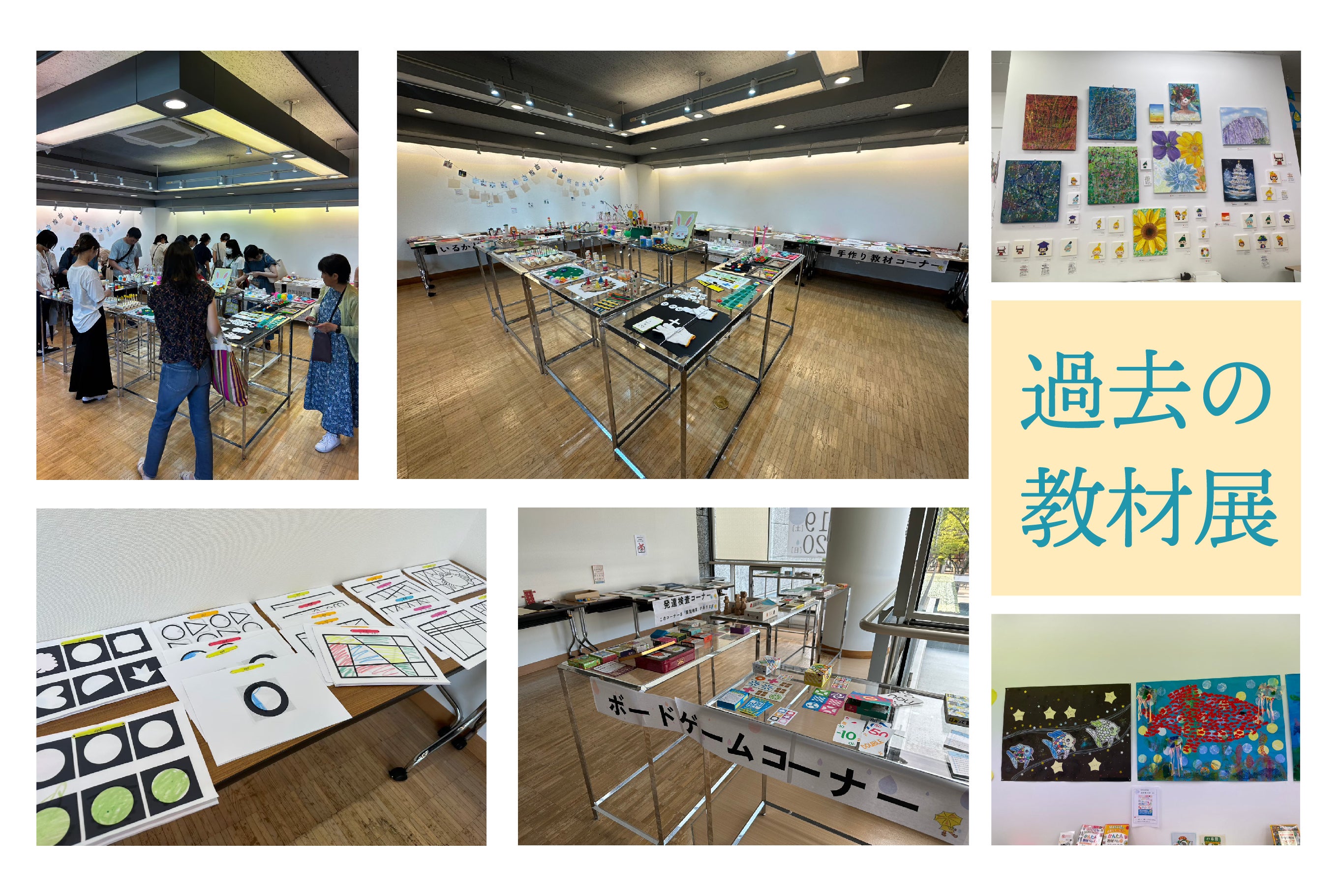 いるかどりが特別支援学級の担任として、目の前の子ども達の“声”を聴きながら手作りした教材が200点以上が展示されます。