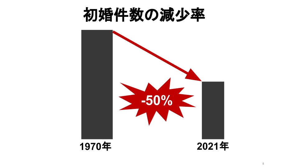 結婚する人が少なくなったということは、子供を作る家庭が少なくなったということです。その結果、少子化が進んでしまいました。