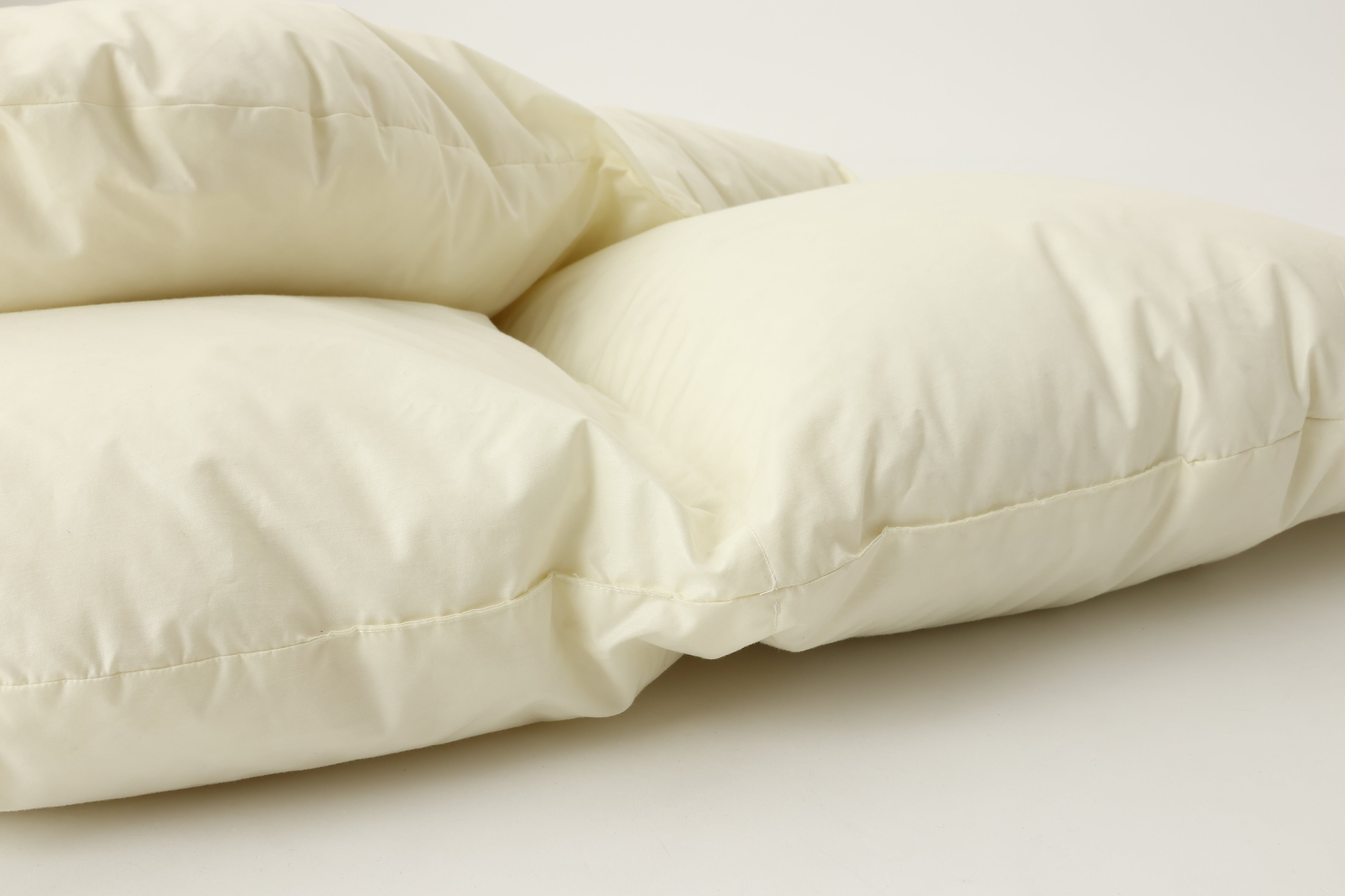 掛け布団がかかる部分は、少し薄くなるように羽毛の量を調節しています。