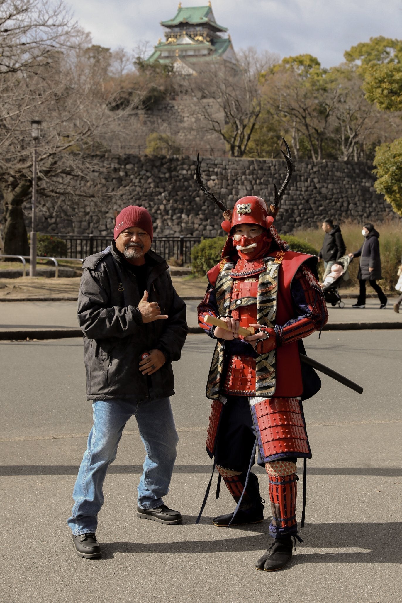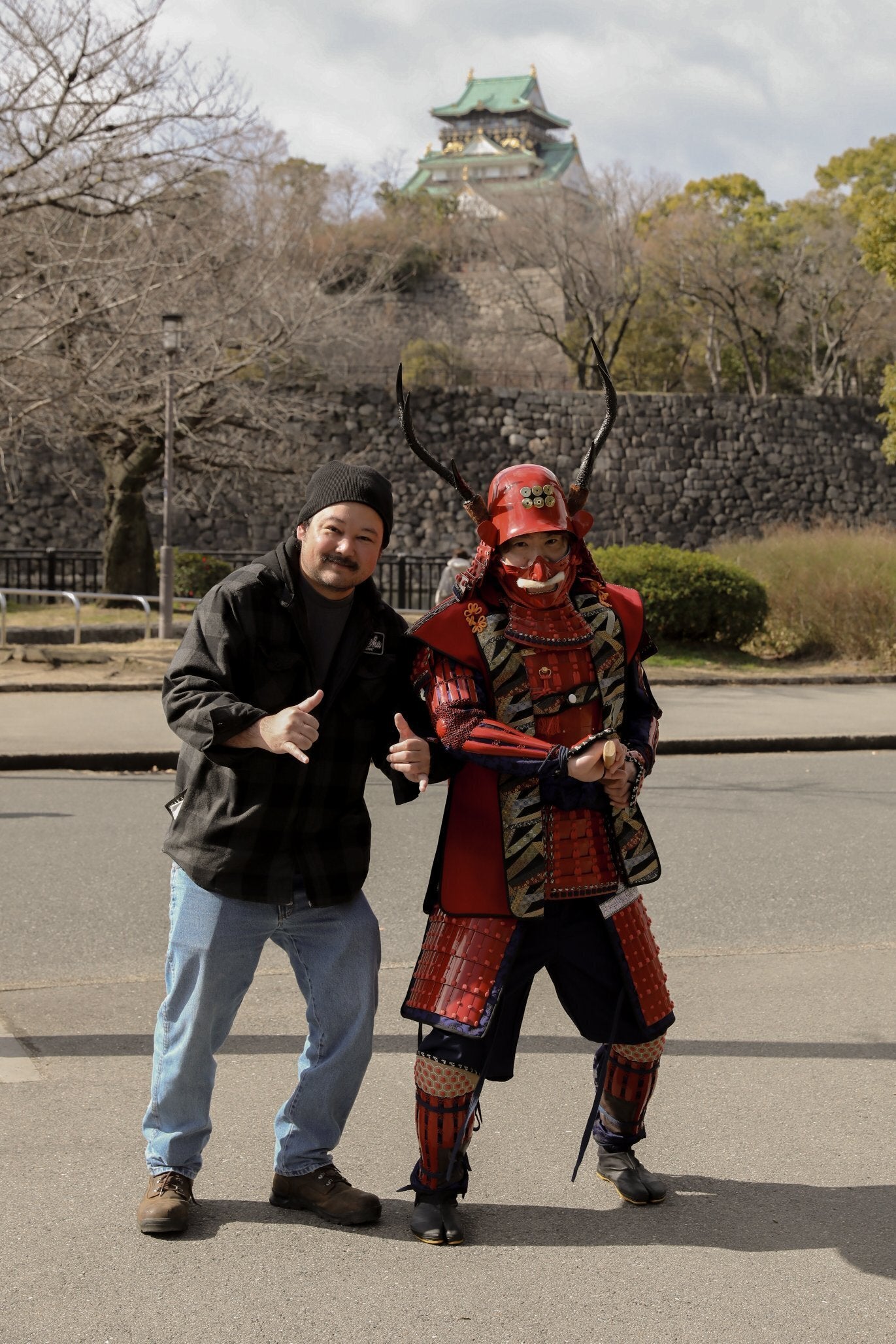 Yukimura Sanada at Osaka Castle for a foreigner photo shoot