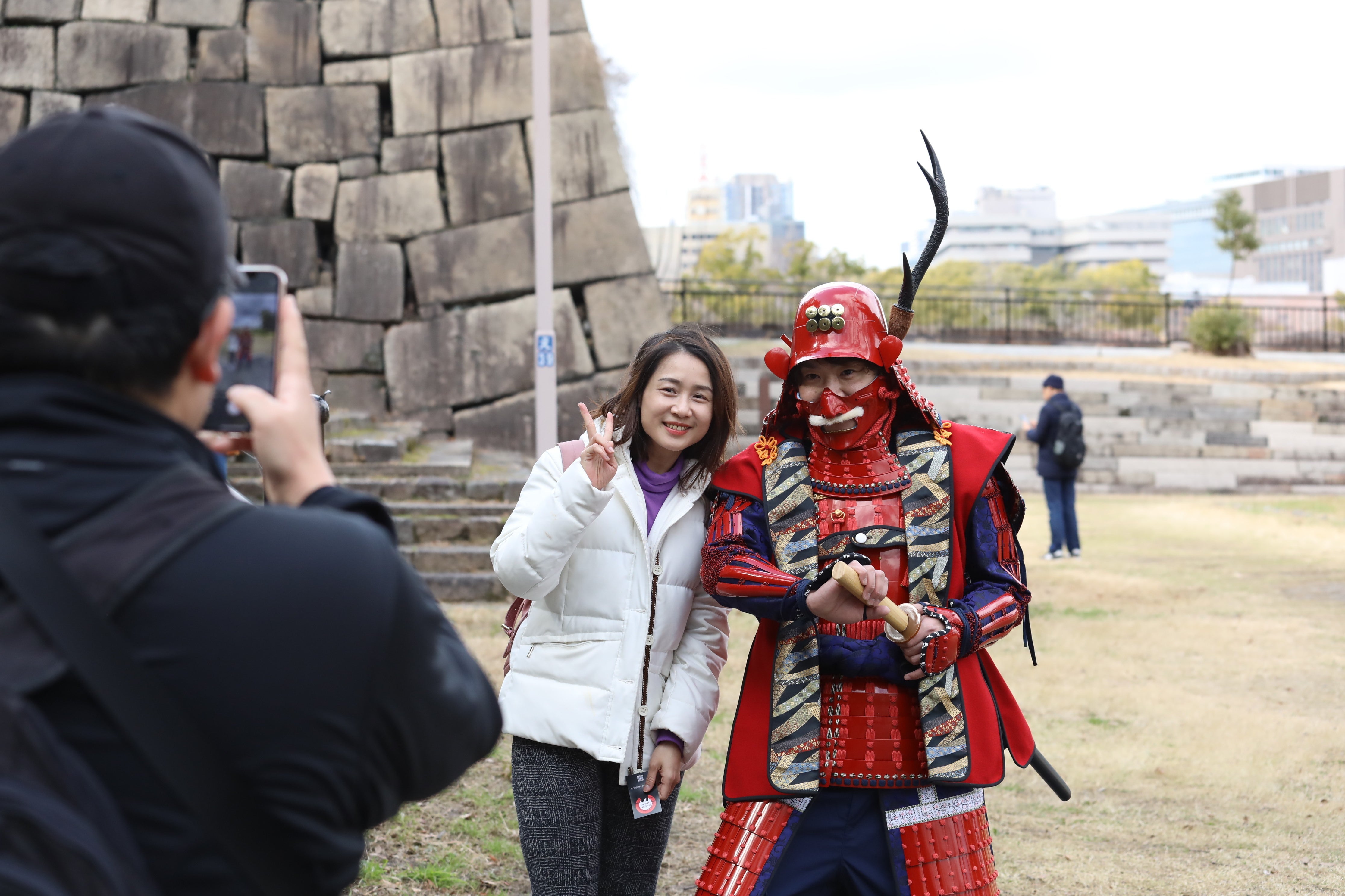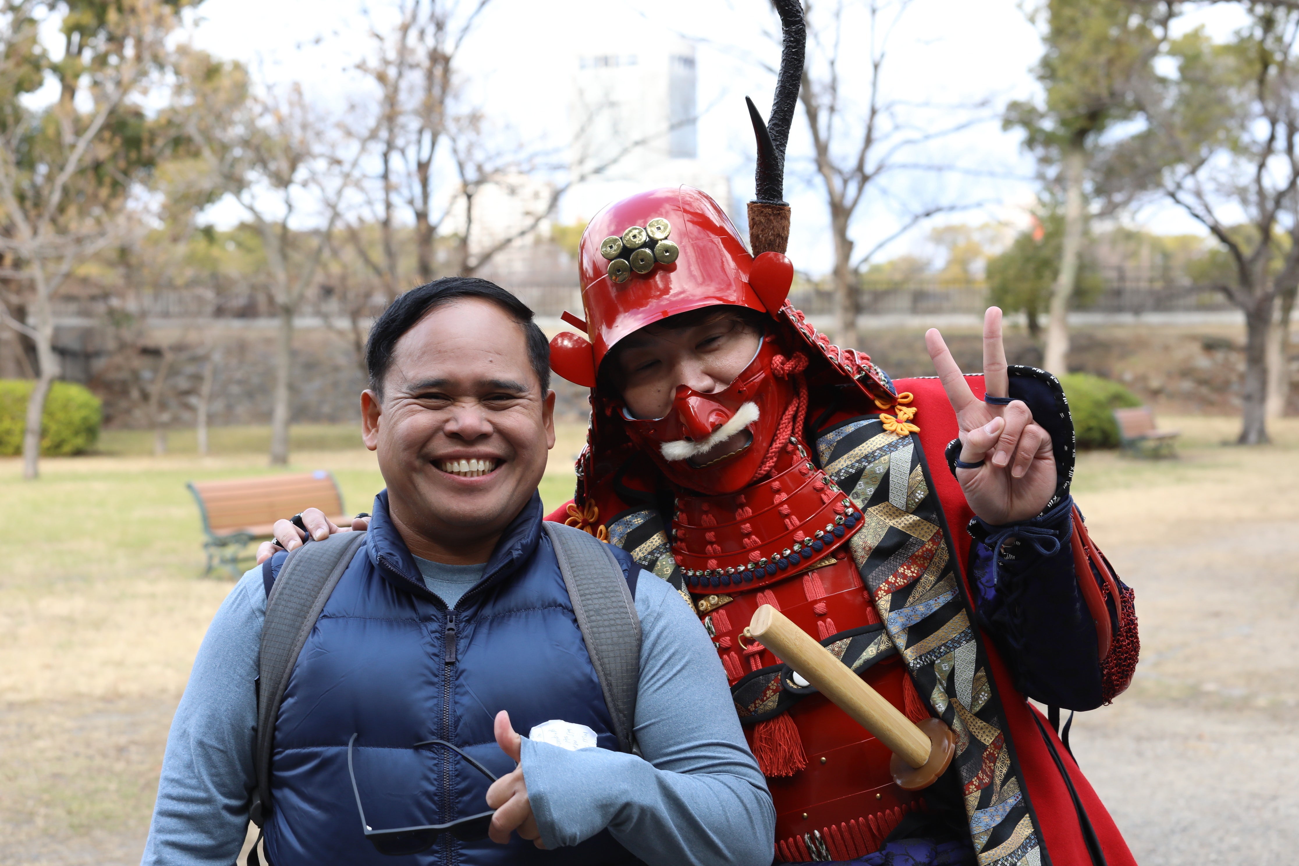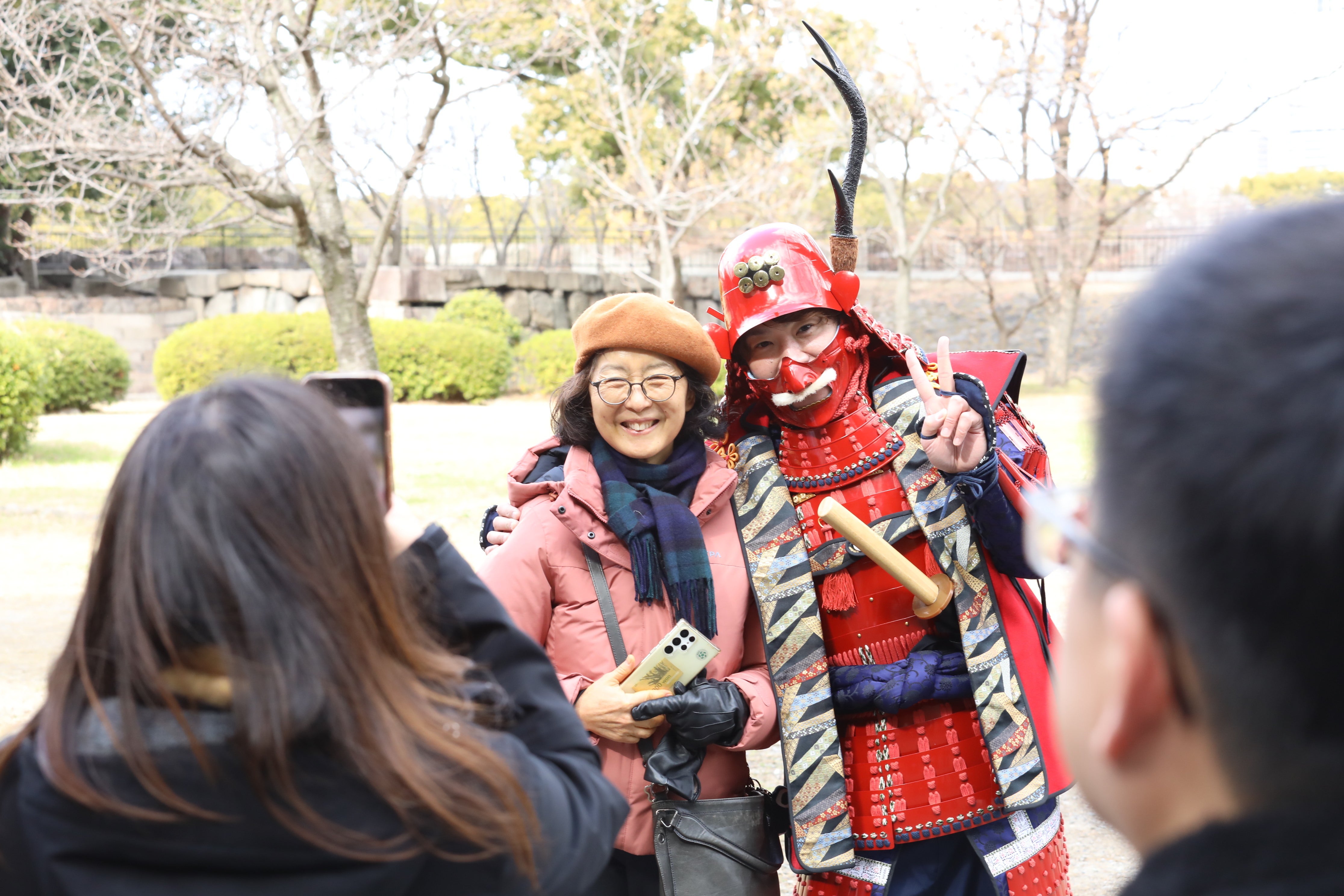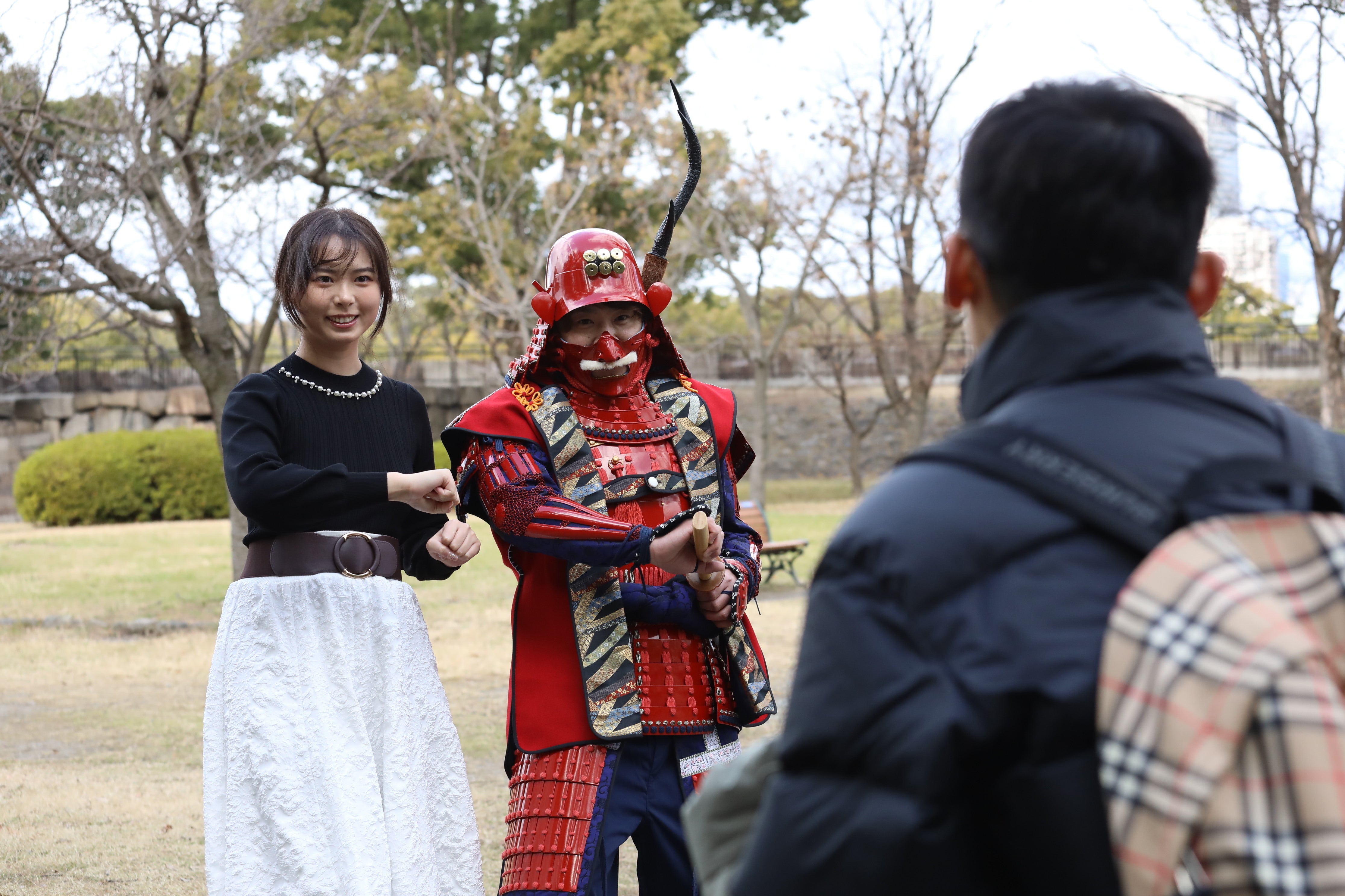栄華を誇った大阪城と共に今も大阪を見守る大阪城豊国神社の秀吉公の像。その秀吉の生誕祭2・6にSAMURAI好きな外国人とフォト撮影してみた