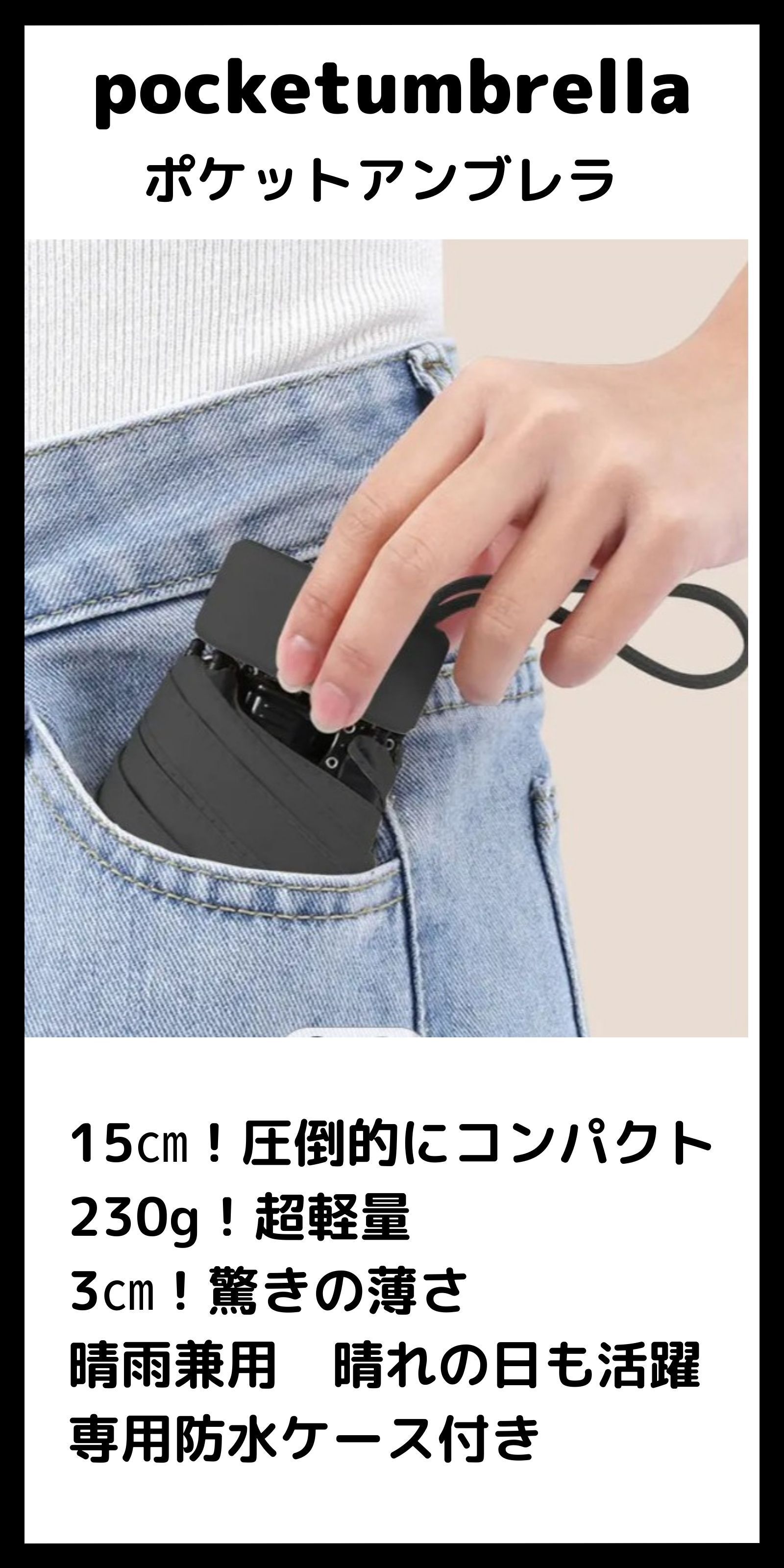pocketumbrellaは半分ほどの3㎝ほどだからかさばらないし持ち歩きにピッタリ!