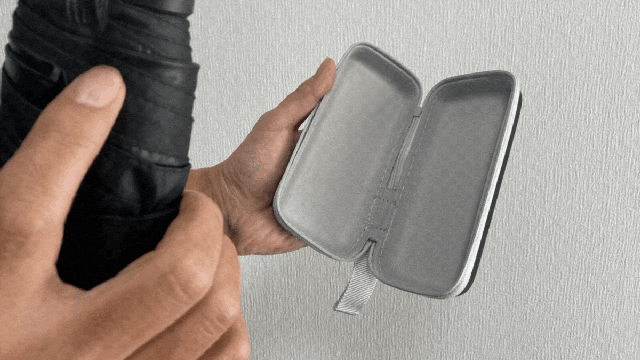 持ち運びを重視して薄さも追及しています。約3㎝の薄さ!スーツやズボンのポケット、鞄の隙間にはいるのでかさばりにくく急な雨に備えることができます。