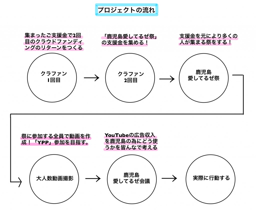 そのためには【鹿児島愛してるぜ祭り】に沢山の方に来ていただく必要があるので、資金がより多く集まれば多くの人を動員できるイベントが開催できます。