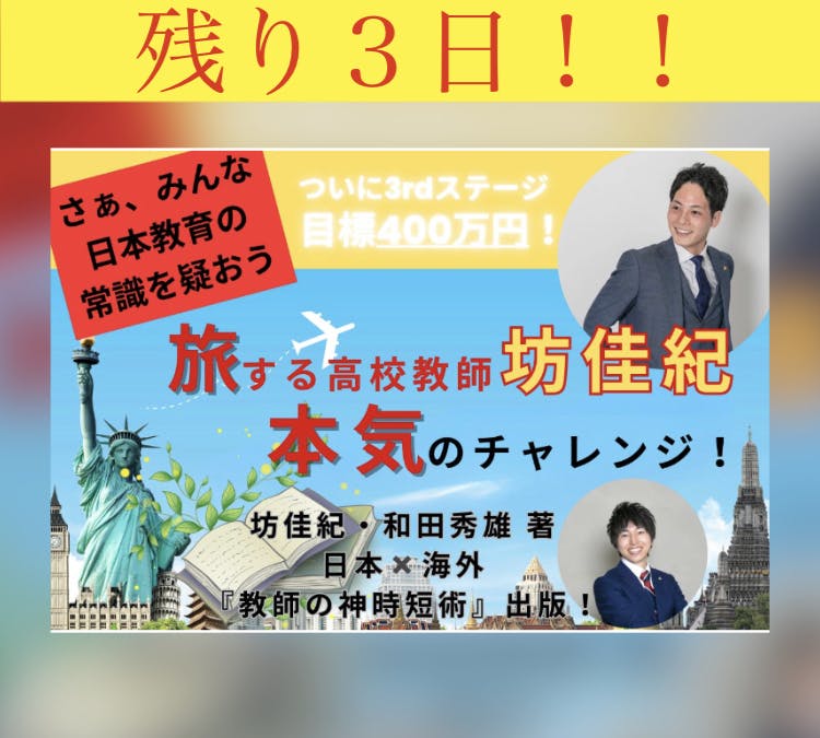 皆さまの応援に支えられてきたプロジェクトも、残すところ3日となりました。