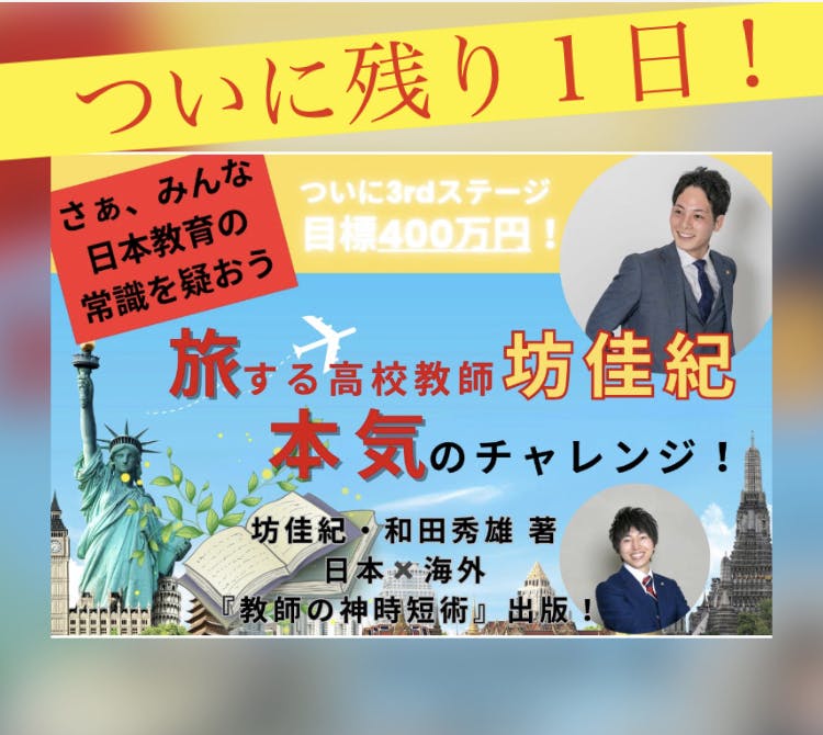 日本教育の常識を変えるための坊佳紀本気の挑戦。