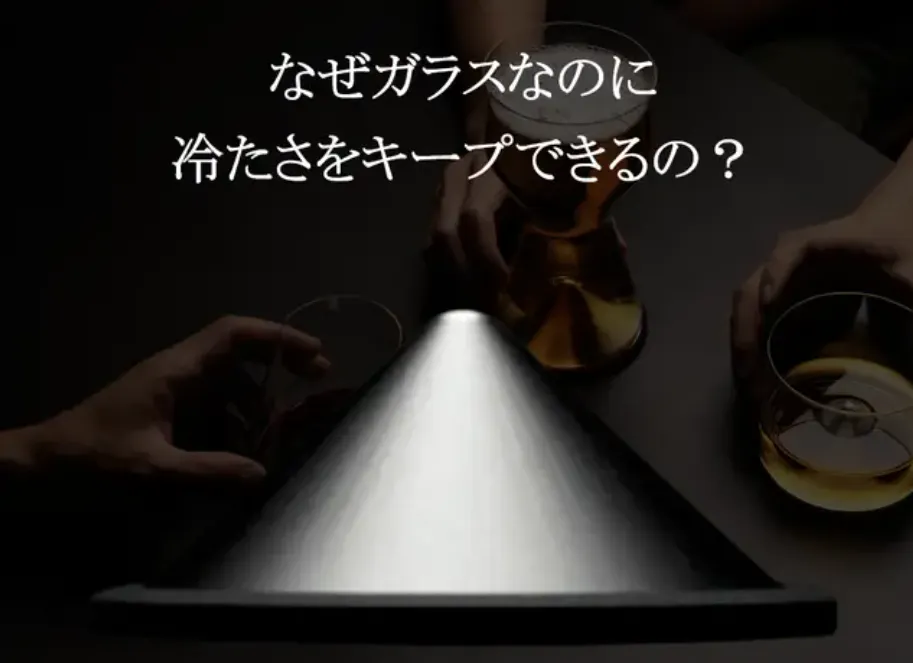 グラスの底のアイストレイ(コースター)により飲み物を冷やしているので、氷が溶けて薄まることはありません。